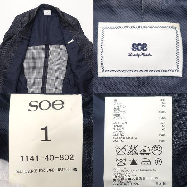 ・メーカー :Soe / ソーイ・製品型番 :1141-40-802・サイズ :表記サイズ:1,肩幅 (約cm):40,着丈 (約cm):72,身幅 (約cm):50,袖丈 (約cm):60,・色(柄)の系統:ネイビー・デザイン :(メンズ)アウター/ジャケット・素材 :綿83% ラミー15% ナイロン2%