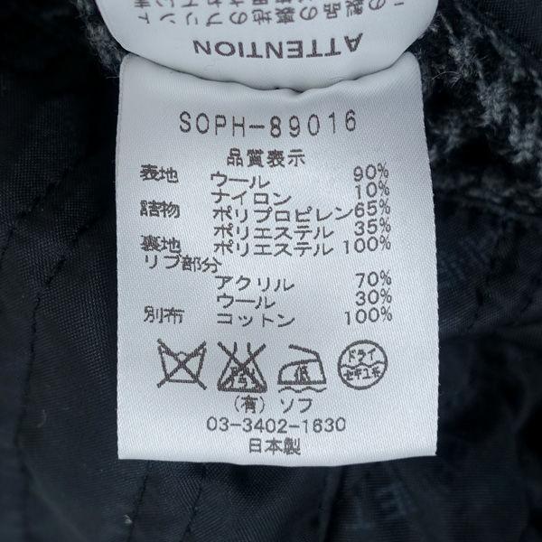 ・メーカー :SOPHNET / ソフネット・製品型番 :SOPH-89016・サイズ :表記サイズ:S,肩幅 (約cm):41,身幅 (約cm):50,着丈 (約cm):68,袖丈 (約cm):60,・色(柄)の系統:グレー ブラック・デザイン :(メンズ)アウター/ジャケット・素材 :表地:ウール90% ナイロン10% 詰め物:ポリプロピレン65% ポリエステル35% 裏地:ポリエステル100% リブ:アクリル70% ウール30% 別布:コットン100%