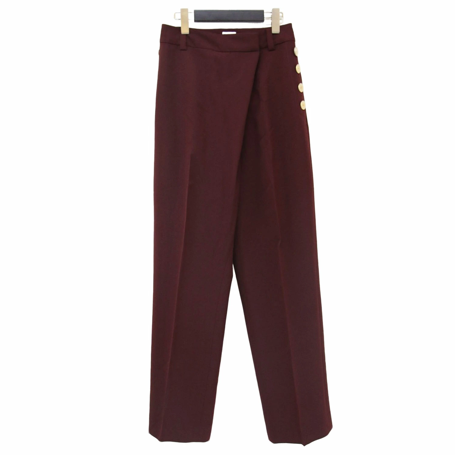 STAIR Pants, Bordeaux, Size 1 (S), Side Button, Tuck Pants, Wrap Design, Wide Leg, Center Press, Bottoms, Trousers, Made in Japan