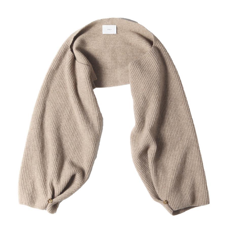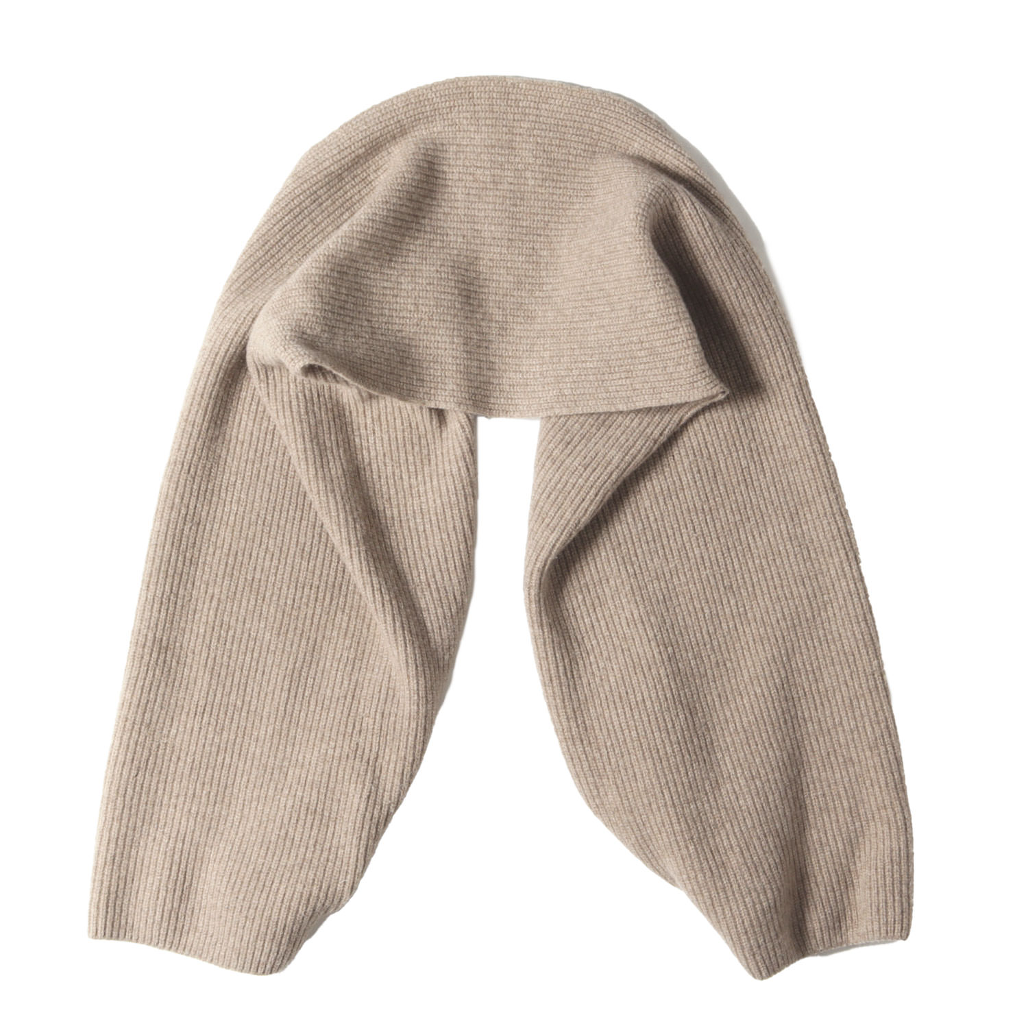 stein Heather Beige Scarf | 2-Way Ribbed Wool Knit Scarf with Hand Knit Sleeves | Made in Japan | Men's Designer Fashion Item | Pre-owned | K4615