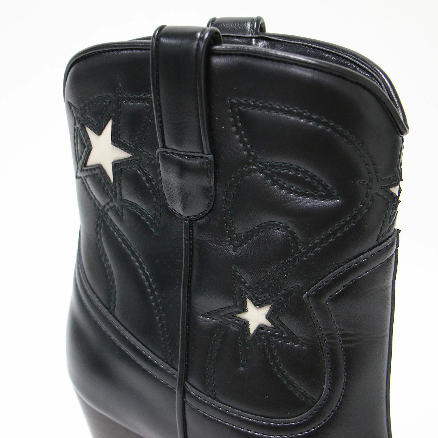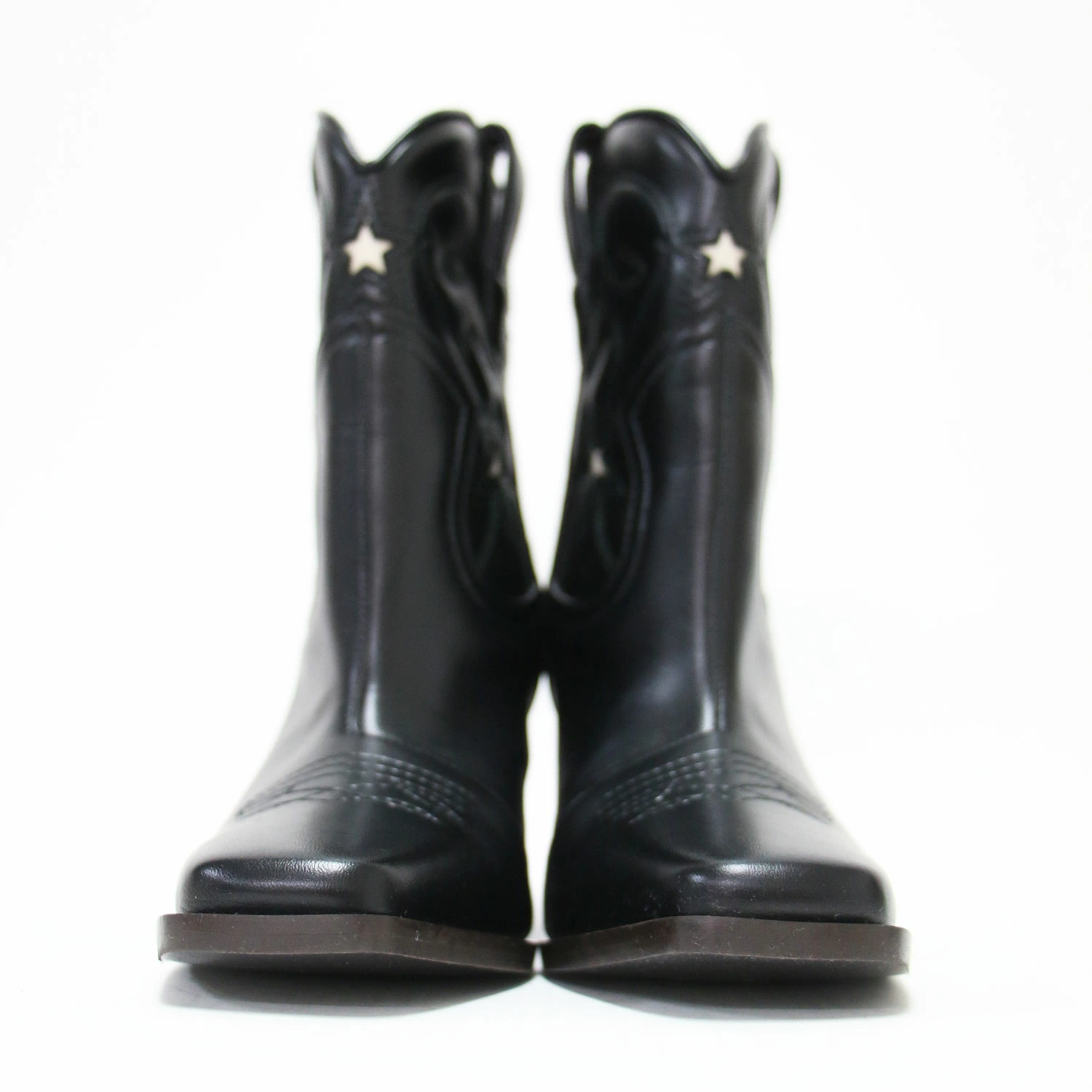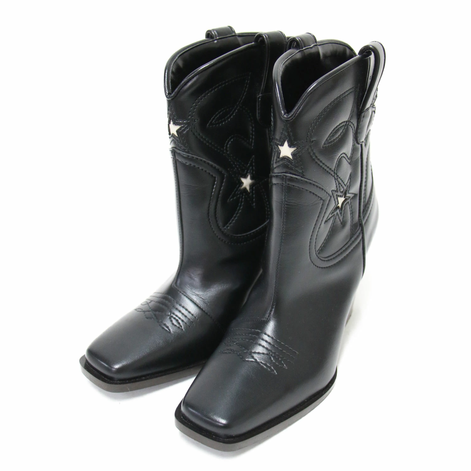 STELLA McCARTNEY Cloudy Alter wedge heel western boots, size 37 (24.0cm), mid-height, square toe, star pattern stitching, black and white, made in Italy, women's, pre-owned, K4667