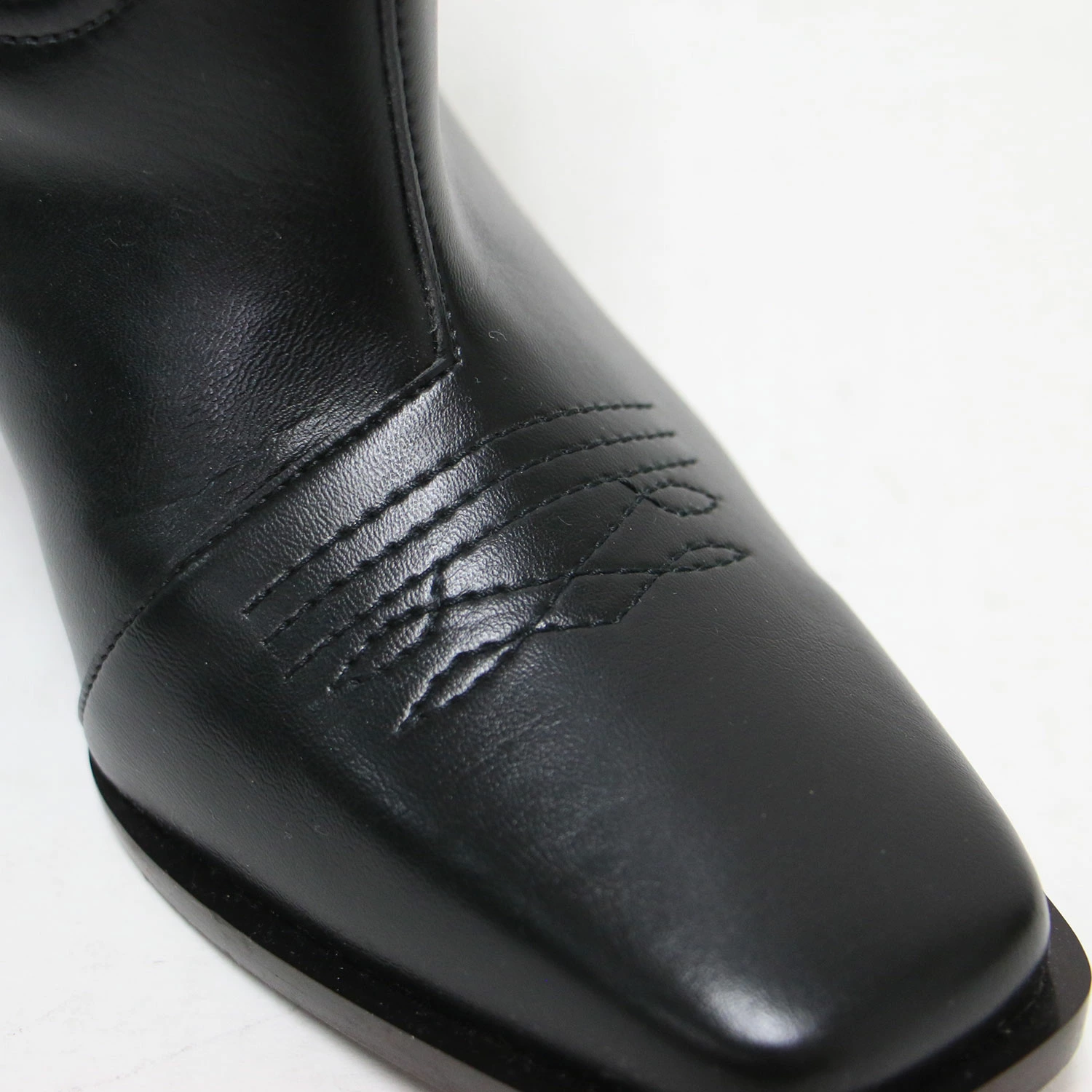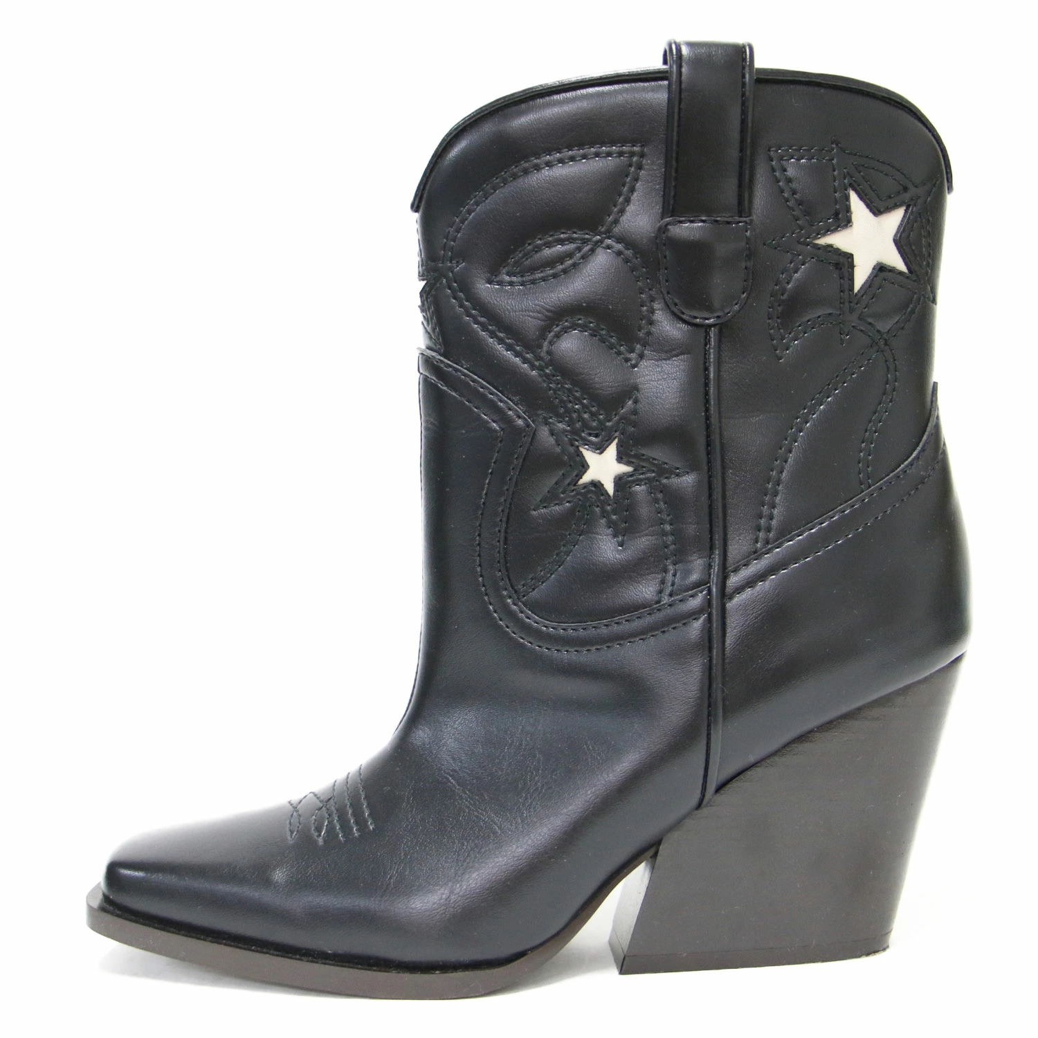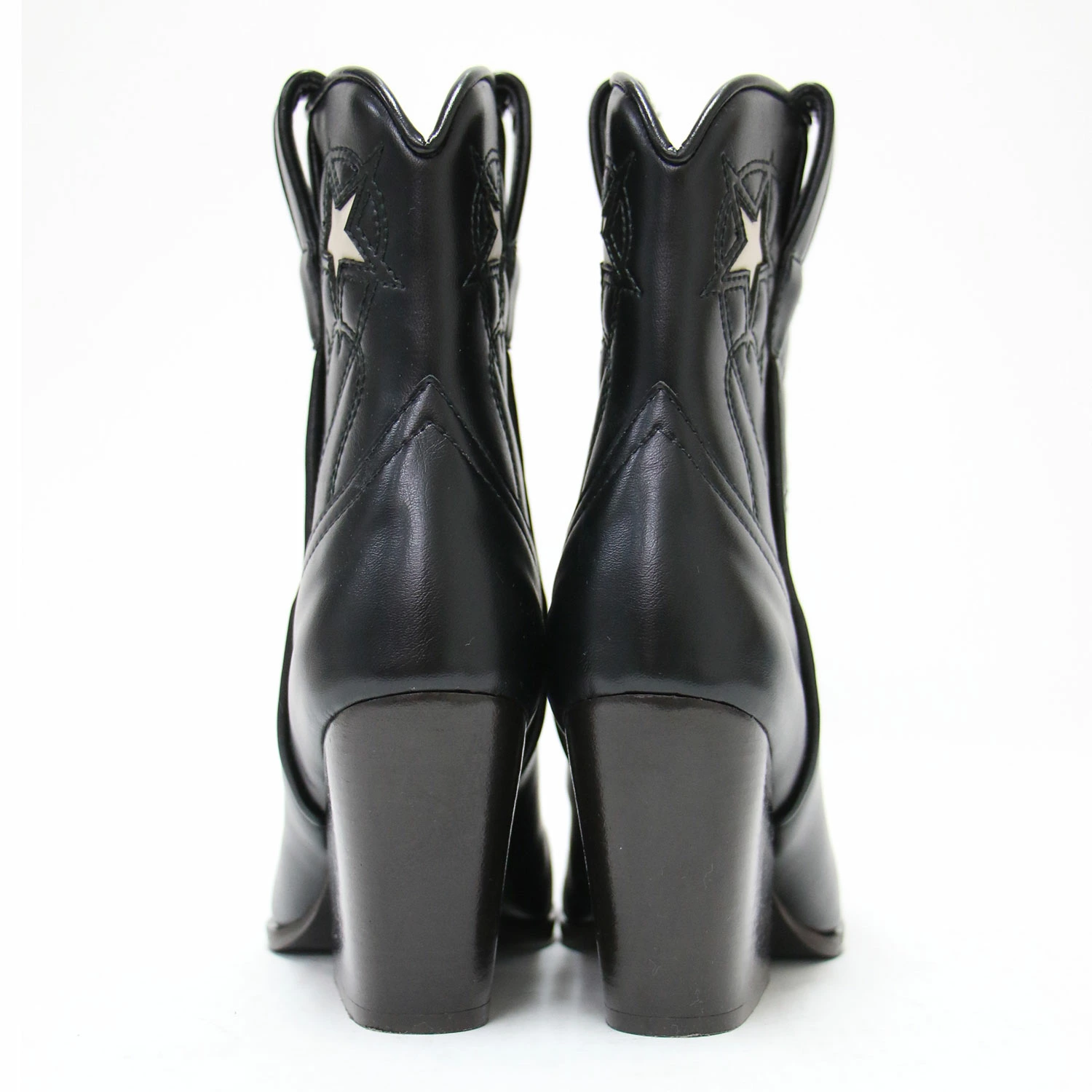 STELLA McCARTNEY Cloudy Alter wedge heel western boots, size 37 (24.0cm), mid-height, square toe, star pattern stitching, black and white, made in Italy, women's, pre-owned, K4667