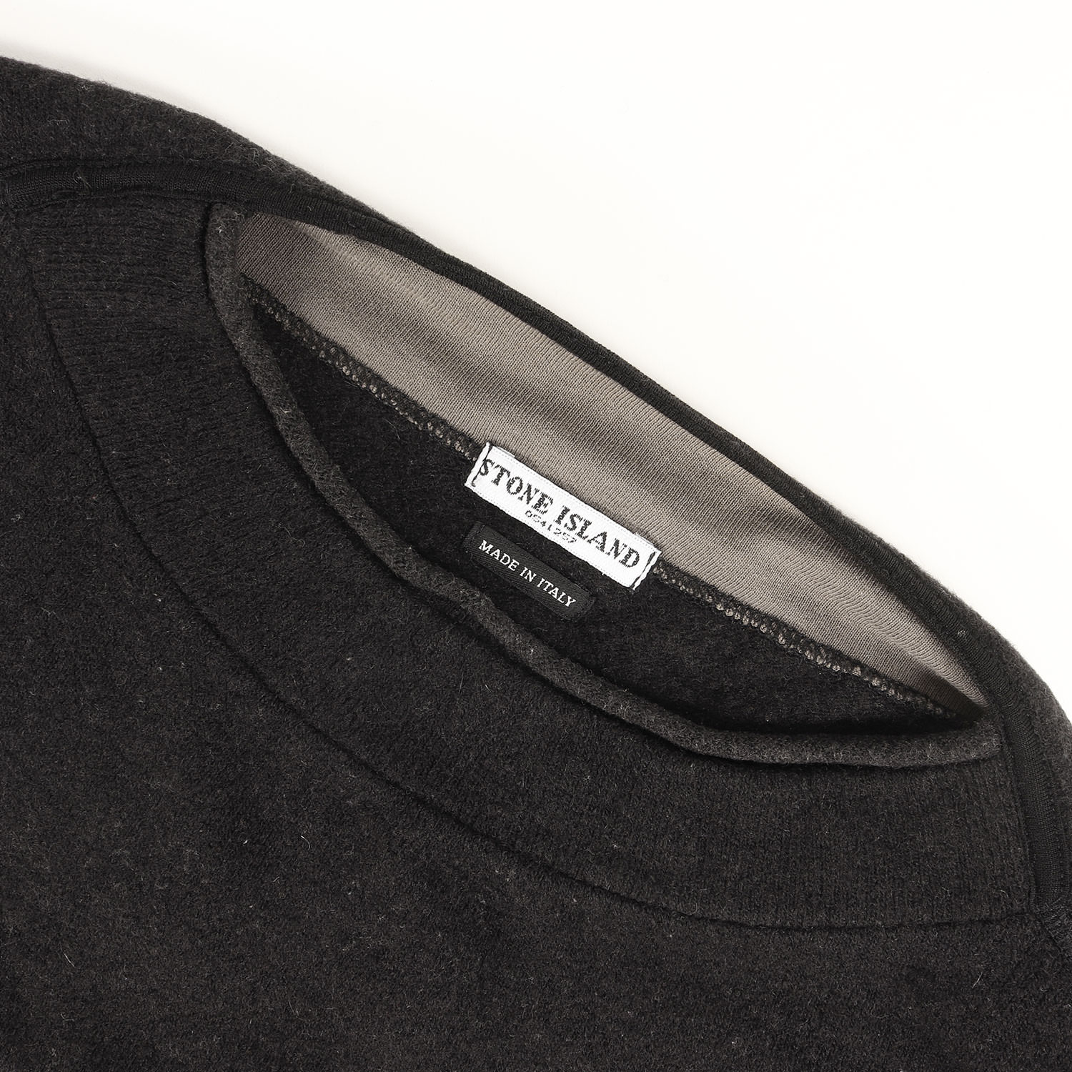 STONE ISLAND Black Wool Knit Sweater, Size M | 90s Boat Neck | Men's Top | Pre-owned | K4572