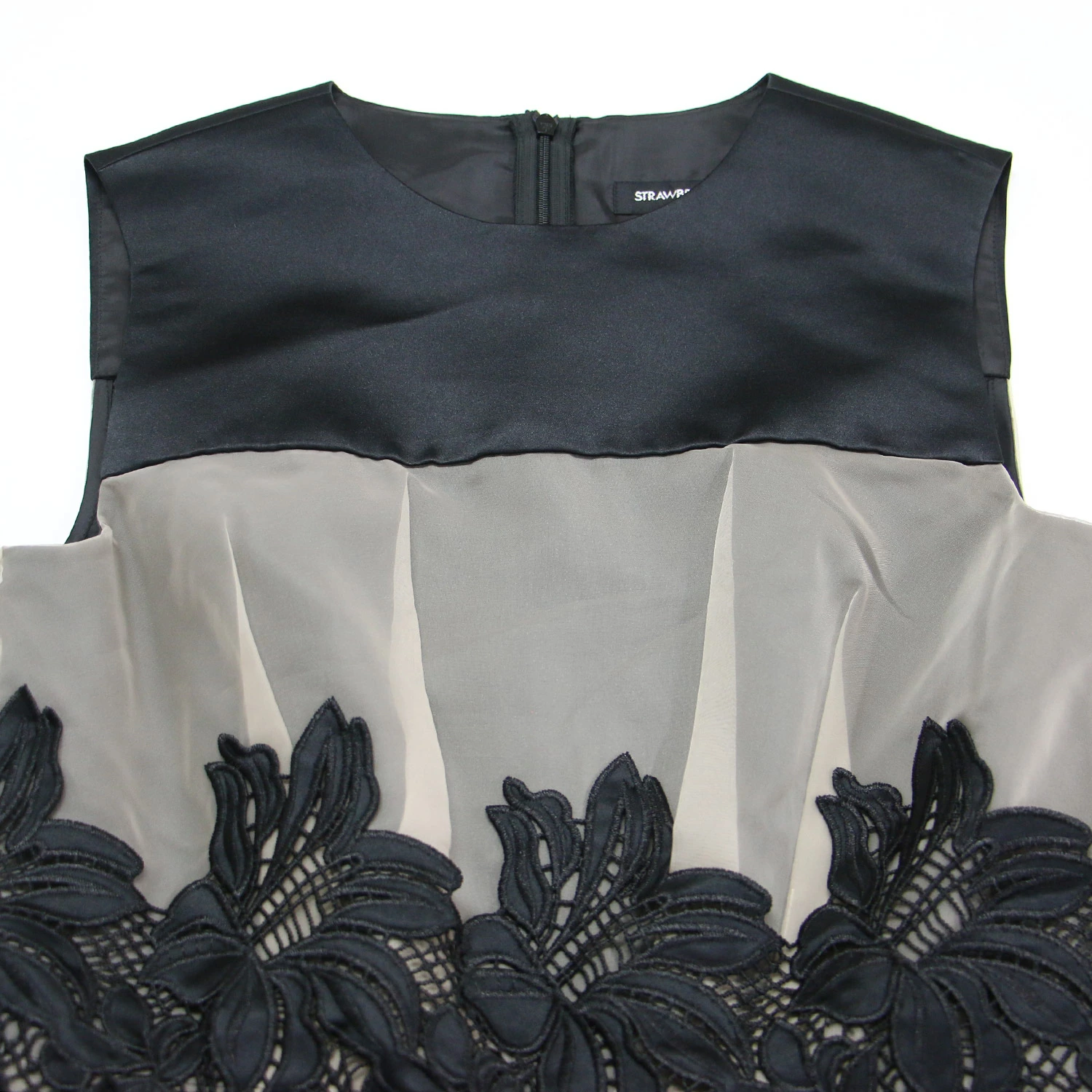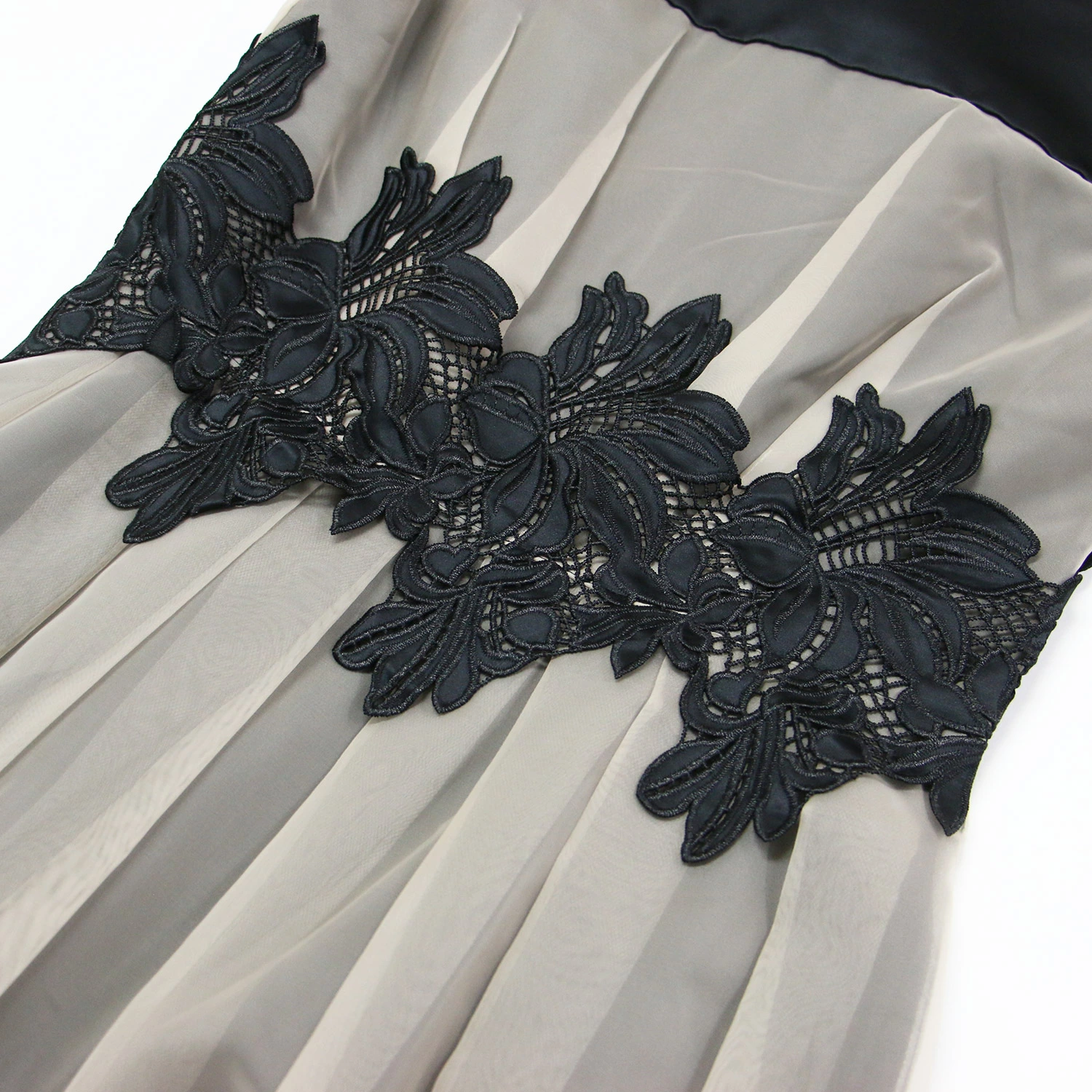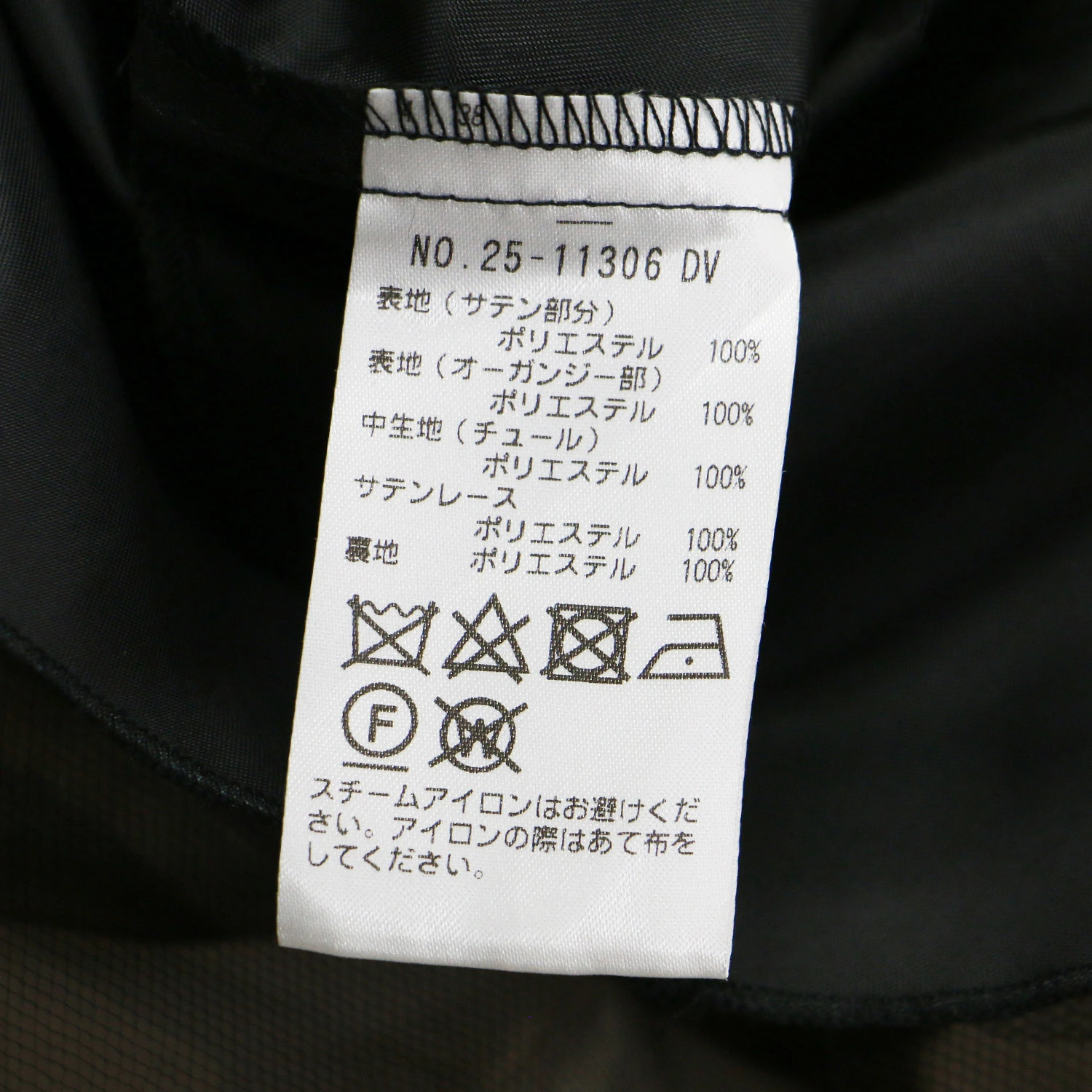 | 素材 | 表地 (サテン部分) ポリエステル 100% (オーガンジー部分) ポリエステル 100% 中生地 (チュール) ポリエステル 100% サテンレース ポリエステル 100% 裏地 ポリエステル 100% |