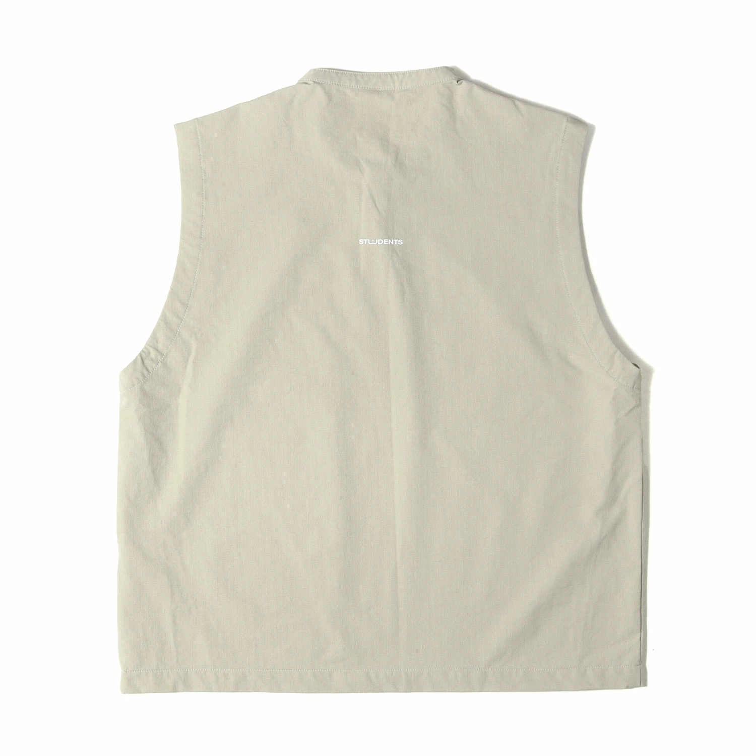 STUDENTS GOLF Vest, Beige, Size L | Logo Henley Neck Stretch Nylon Vest | Men's Golf Tops, Pre-owned, Excellent Condition, K4642