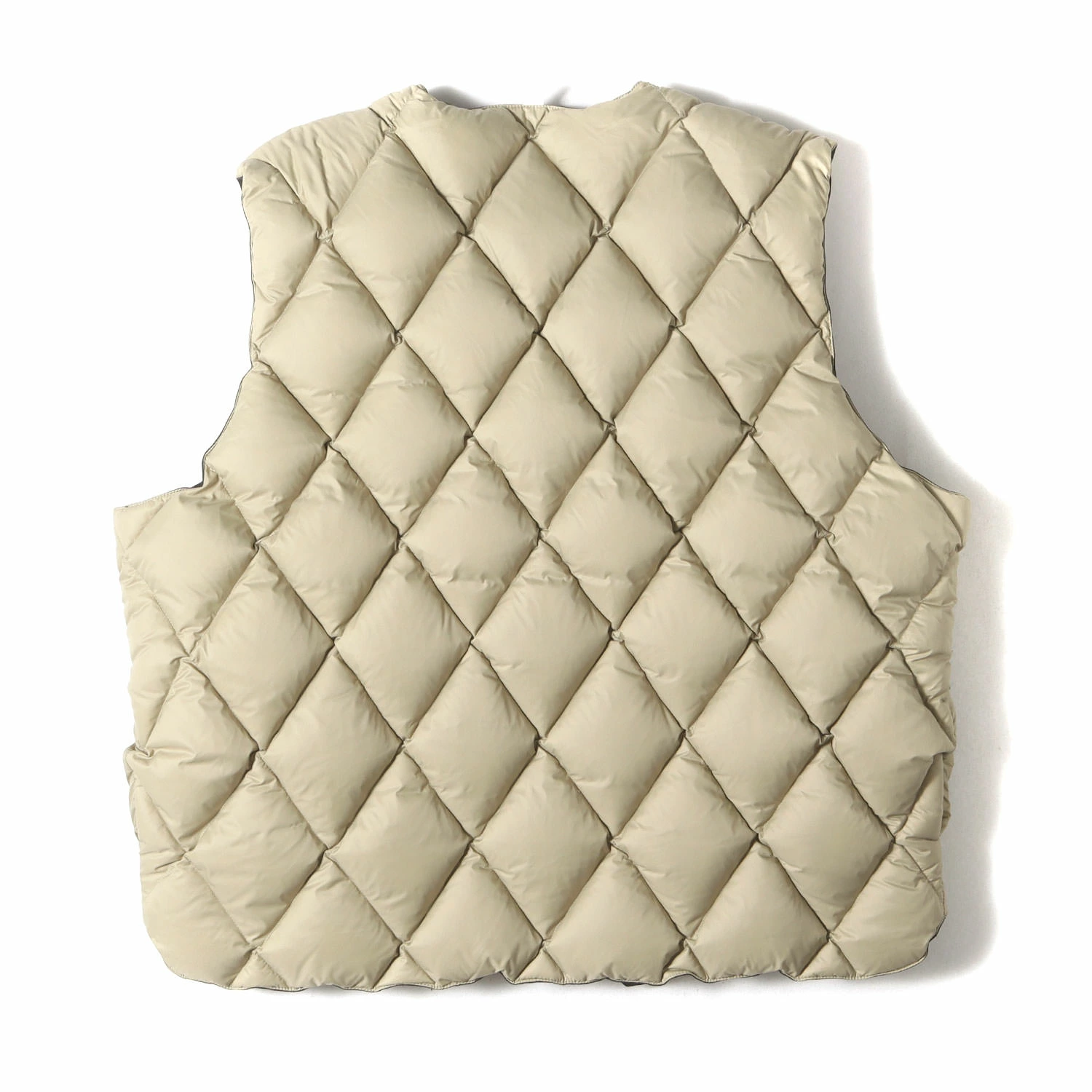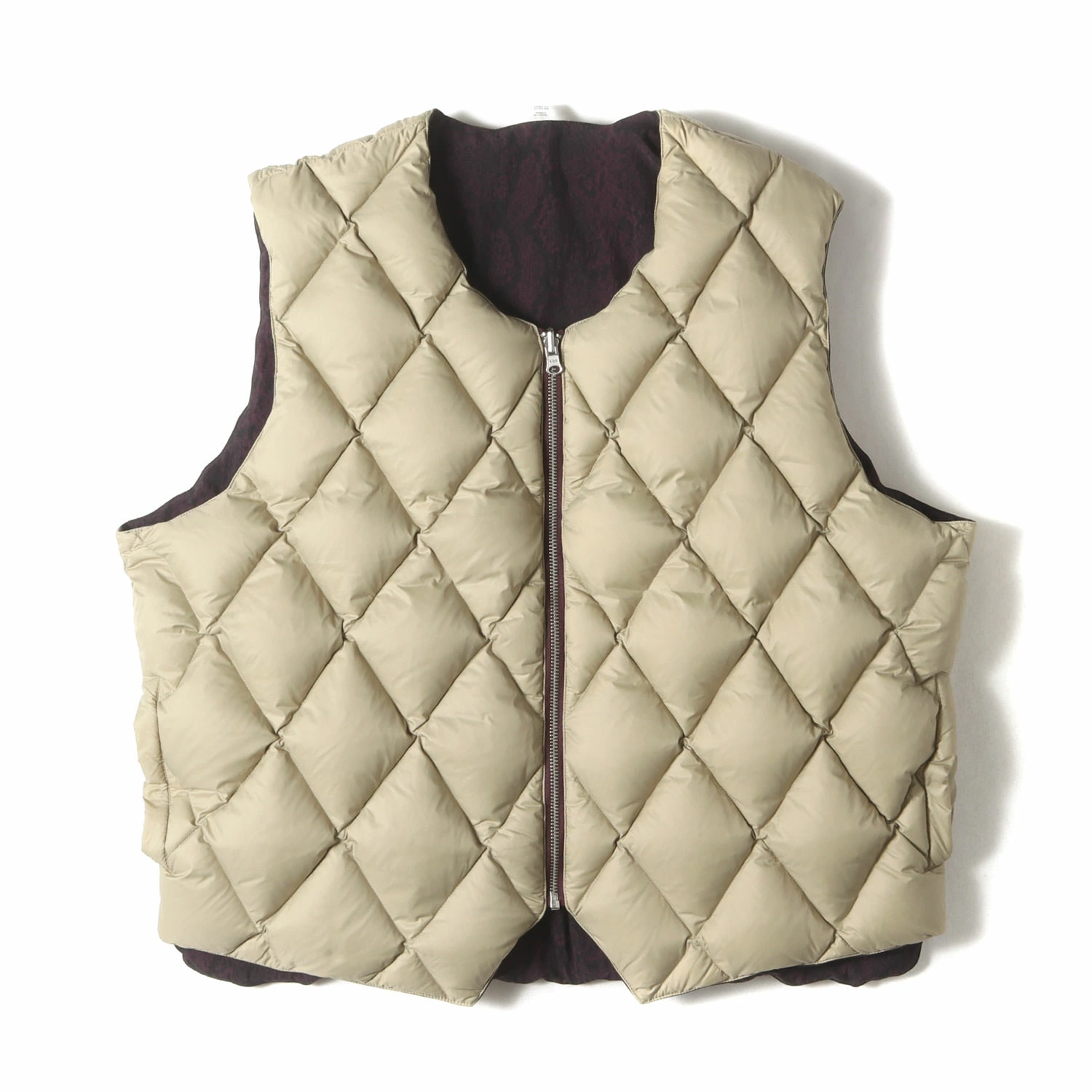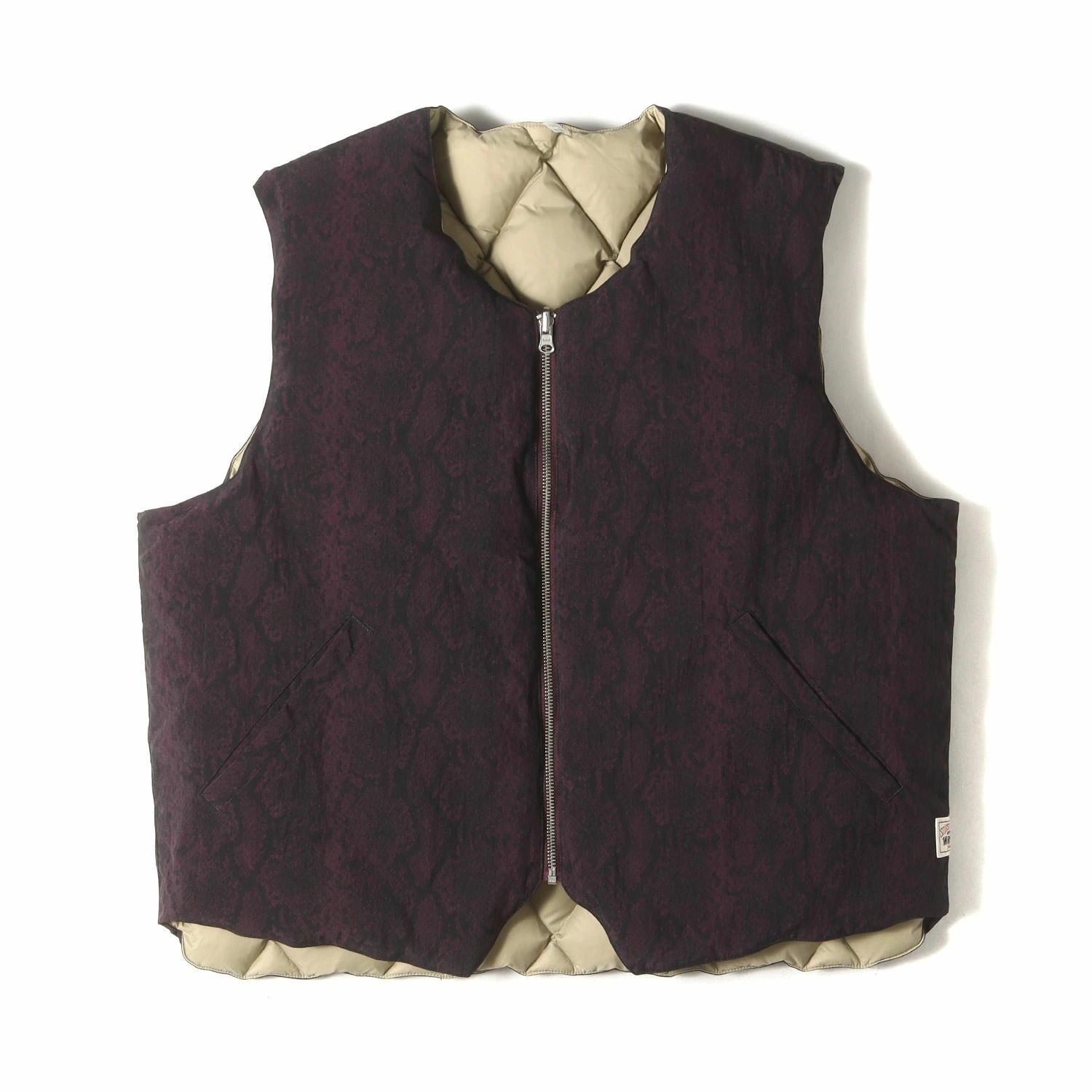 - パイソン柄ナイロンとキルティングナイロンのコンビで仕上げたリバーシブルダウンベストになります。