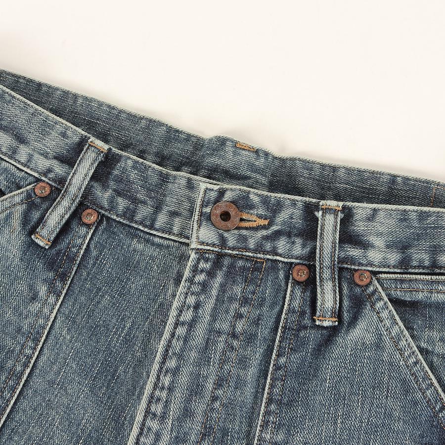 | 商品説明 | ・ブランドオリジナルデニム"JIMI CLOTH" ・別注の鉄製ネオバボタンと銅製のリベット ・ウエストバックホースレザーパッチ ・フロントジッパーフライ ・ダブルニーデザイン |