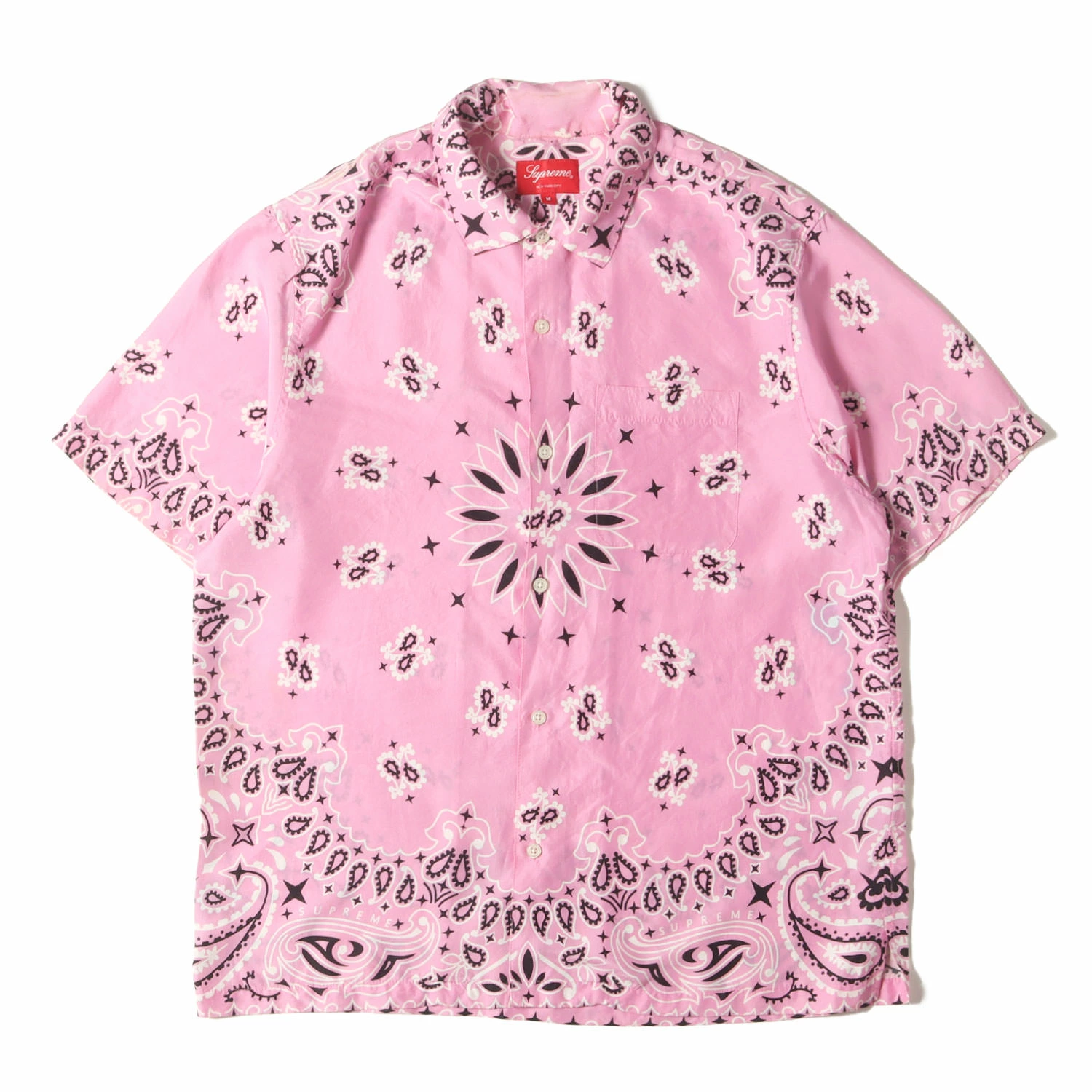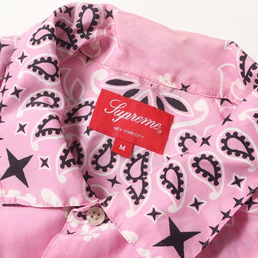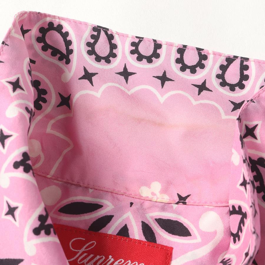 Supreme Shirt, Pink, Size M | 21SS Bandana Silk Short Sleeve Shirt (Bandana Silk S/S Shirt) | Men's Casual Shirt (Pre-owned) [K4616]