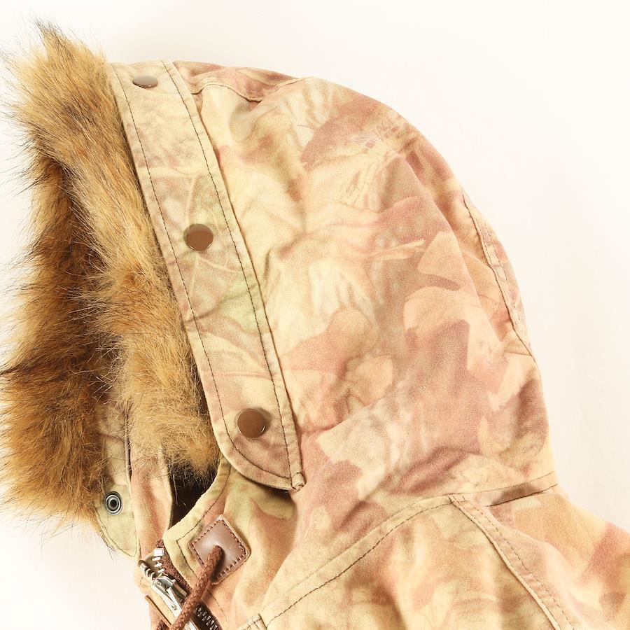 商品説明ツリーカモ柄の起毛生地で仕上げた裏地キルティングのN-3Bフライトジャケットです。比翼部分にはスペルアウトロゴ刺繍がデザインされています。
