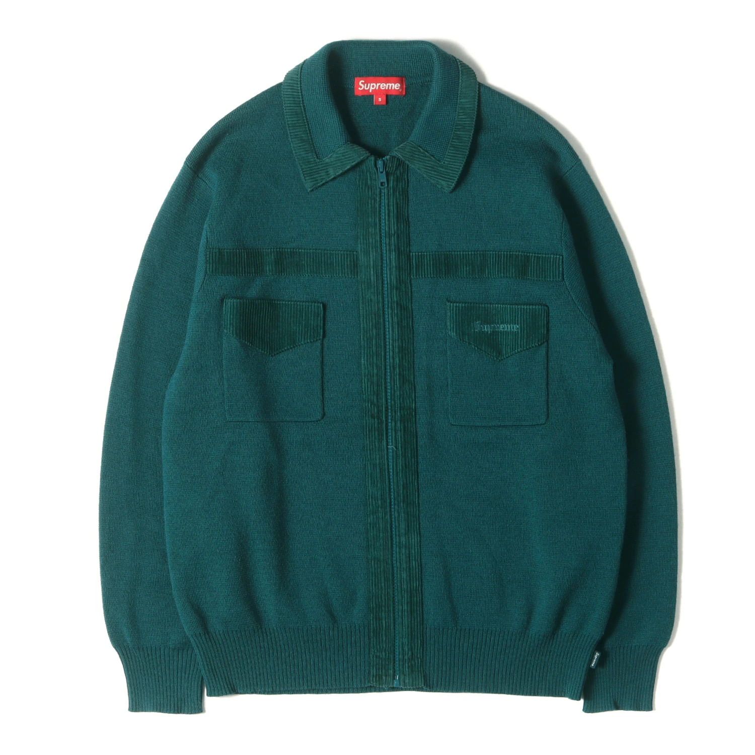 Supreme Teal Knit Sweater, Size Small | Corduroy Detailed Zip Sweater | Men's Sweater | Pre-owned | K4615