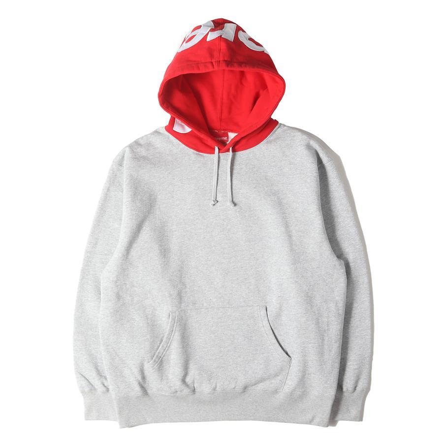 Supreme Heather Gray Hoodie, Size L | 21AW Hood Logo Contrast Hooded Sweatshirt | Men's Hoodie Pullover [Pre-owned] [Excellent Condition] [K4624]