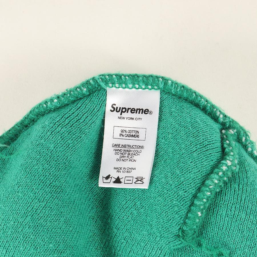 - カシミアブレンドのボディを使用したベーシックな折り返しニットビーニーです。ぐるりと一周する大きなSupremeロゴをあしらったデザインになります。