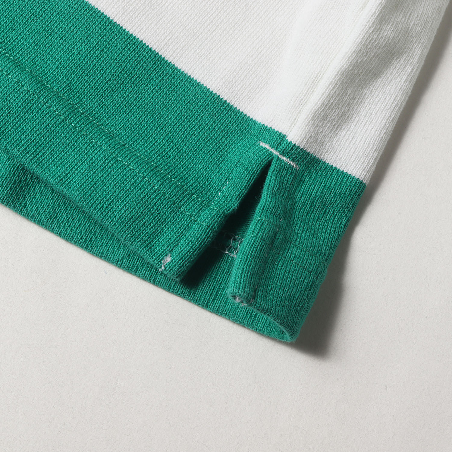 | 商品説明 | ボーダー柄のヘビーウェイト生地を使用したラガーシャツです。ラリー風のパッチや刺繍とBOXロゴパッチをあしらったデザインになります。 |