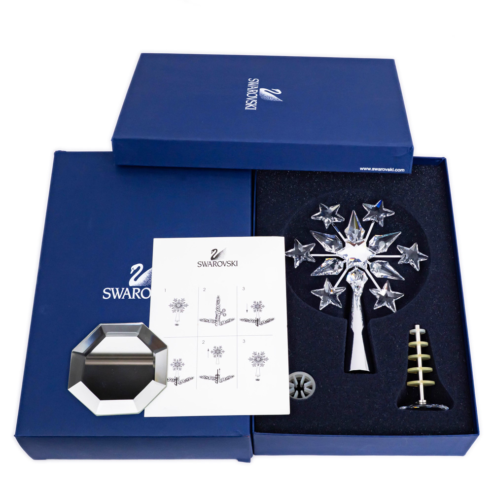 Item Rank: BCondition: Used.This item was displayed as a piece of interior décor by the previous owner.There is a chip on the base. There is also a small chip on the tip of the star on the left side (9 o'clock position). There are also some minor scratches that cannot be fully captured in the photo.Please refer to the photos for a good understanding of the condition, but please feel free to ask any questions or contact us with any concerns.*The texture and color may appear different from the actual product depending on the shooting environment and your monitor settings.Brand: [SWAROVSKI]Product Name: Christmas Tree Topper Chrome 2005Line:Model Number: 632785Serial No.:Stamp:Material: CrystalColor: Clear / SilverSize: Approx. 12cm W x 17cm H*Please allow for slight variations in size due to the shape of the product.If you have any concerns about size, please contact us directly before ordering.Weight: (Approx.) 151.1gReference PriceSpecificationsAccessories: Genuine boxOuter box has some damage.The octagonal base appears to be an aftermarket product.