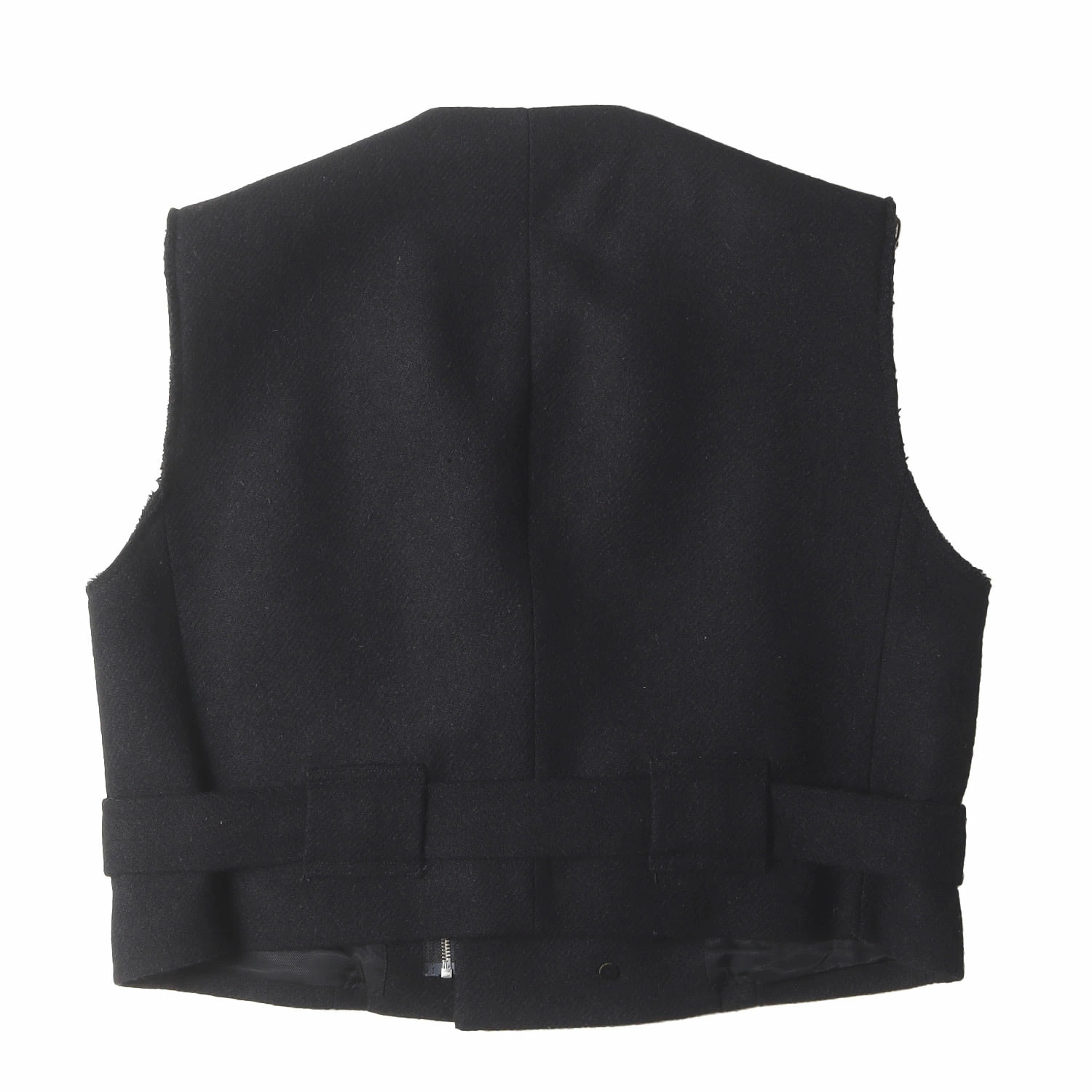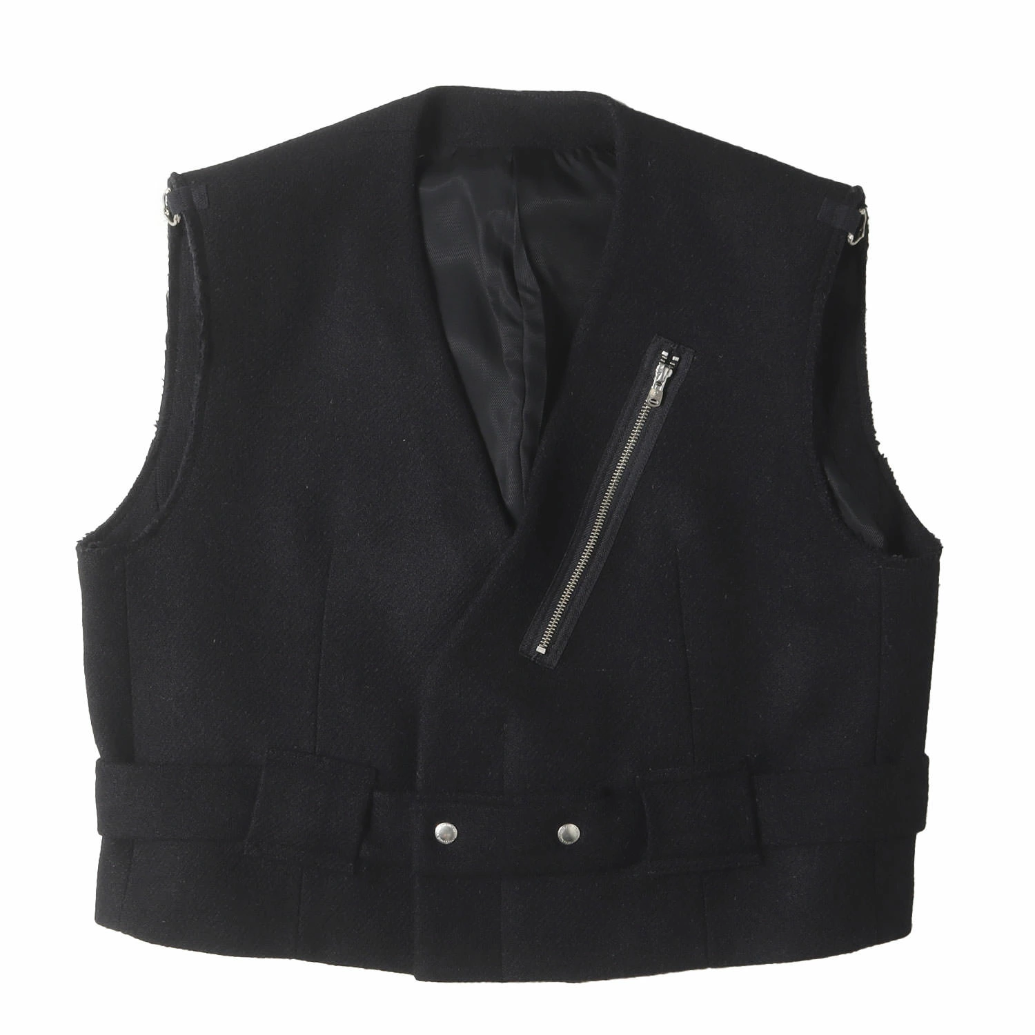 - ボディに“HARRIS TWEED”社のファブリックを使用したジップベストです。肩口を切りっぱなしであしらい、ルーズシルエットで仕上げたデザインになります。こちらはサンプル品です。