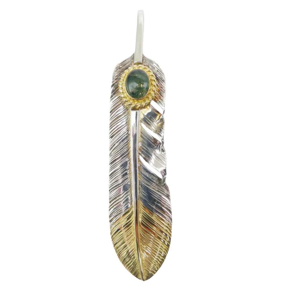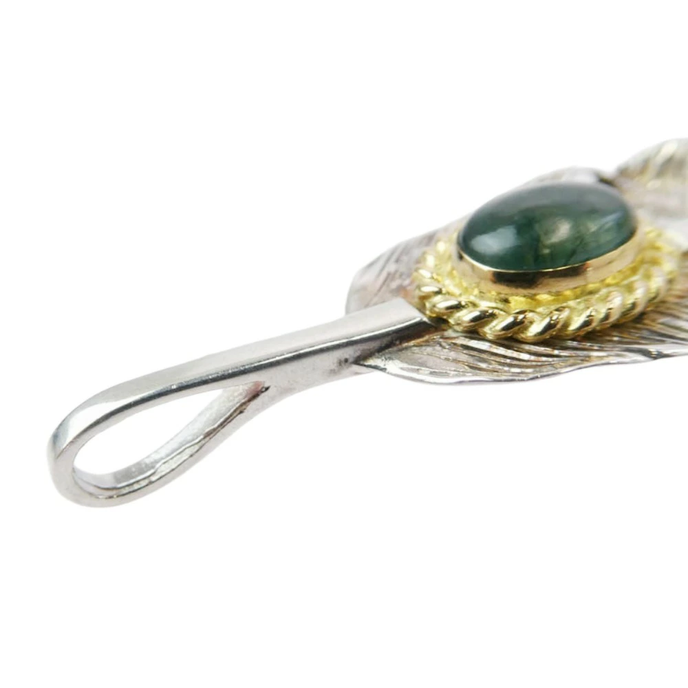 TARO WASHIMI Washimi Taro L OLD FETHER K18 TOP MOSS AGATE K18 CUP Gold-tipped feather with gold rope moss agate, silver and gold colors, men's [pre-owned]