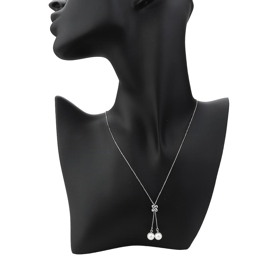 This feminine necklace features two pearls that dangle from the chest. The sliding flower motif allows you to adjust the length around your neck to match your outfit of the day. [Product Rank]