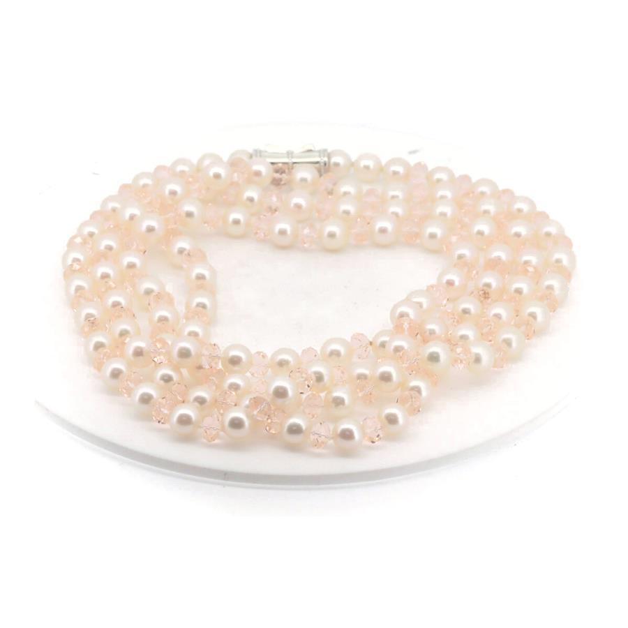 Tasaki Varie Pearl Crystal Necklace, 7.2mm-7.4mm Pearls, SV925 (Silver 925)