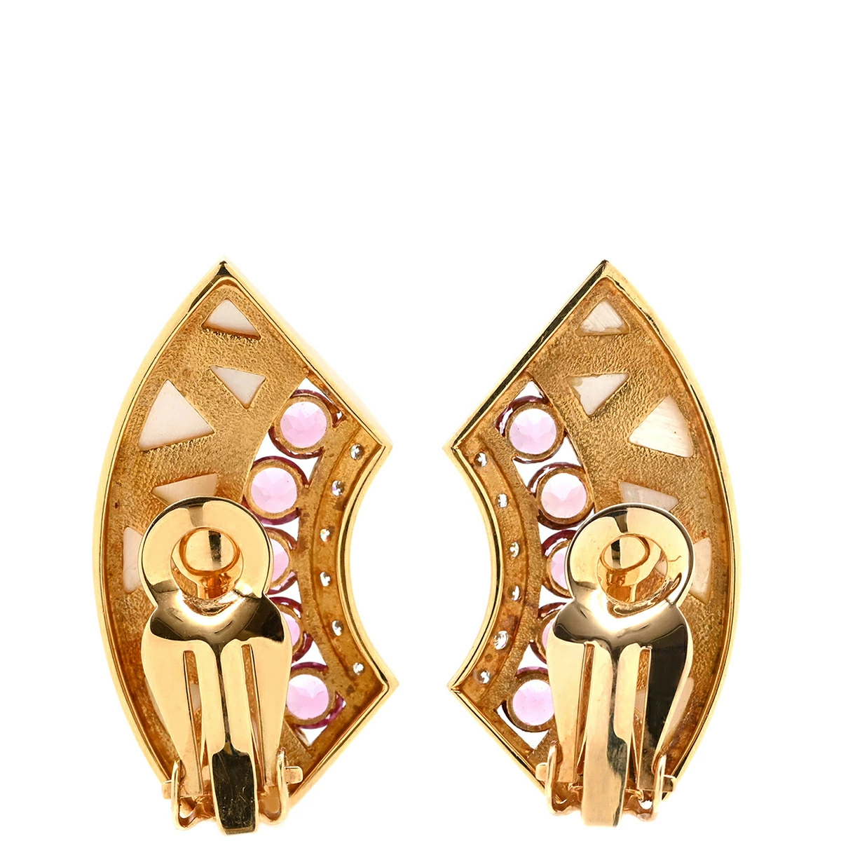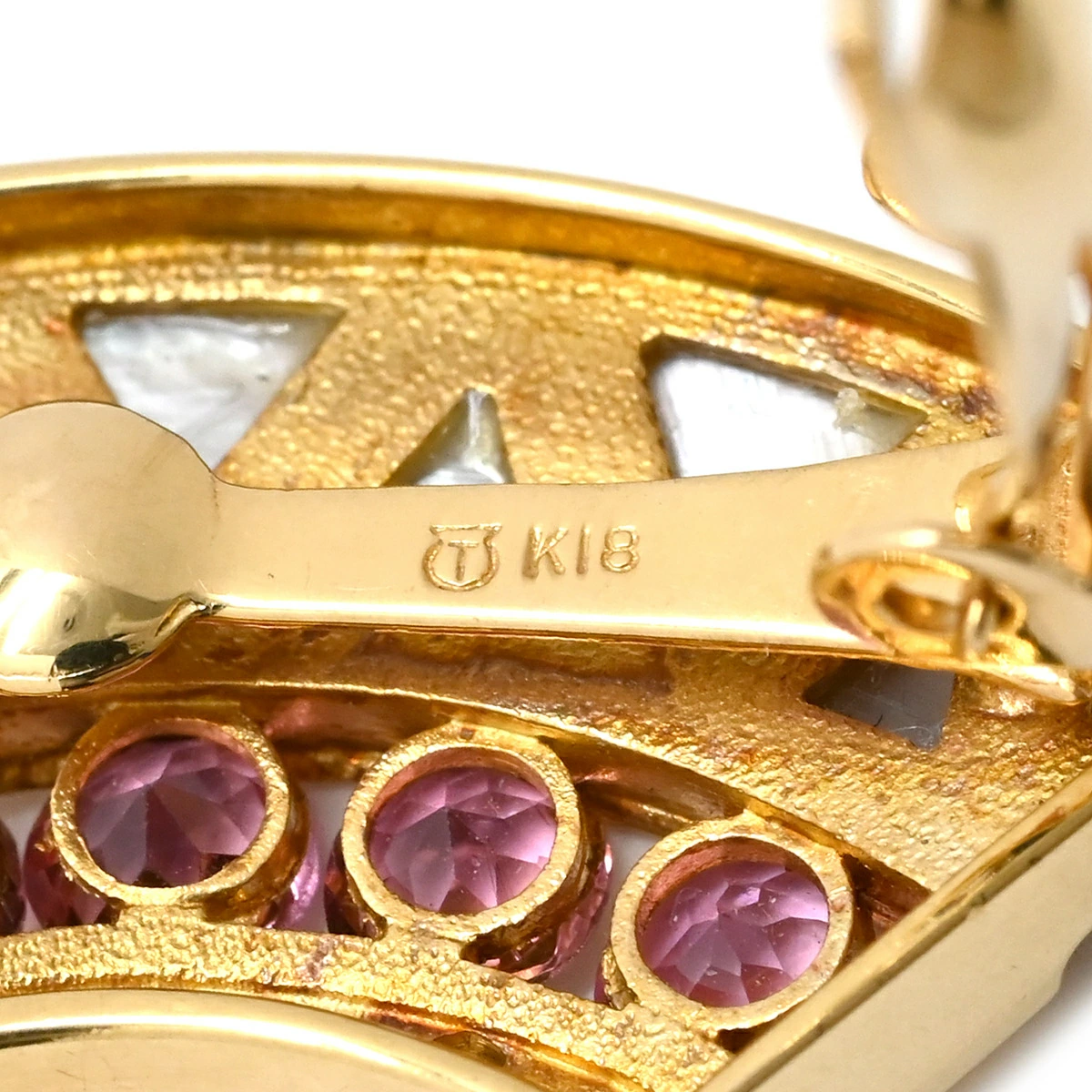 ▲クリックで拡大されますTASAKI TASAKI イヤリング K18YG ダイヤモンド ピンクトルマリン ホワイトマザーオブパール ホワイト×ピンク×イエローゴールド 750YG Au750 ダイヤ シェル トルマリン バイカラー クレセント 扇形 - レディース定番 人気 美品 【中古】