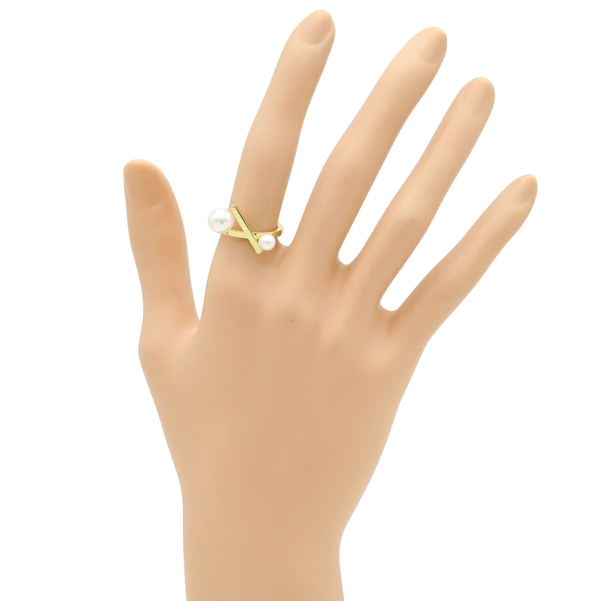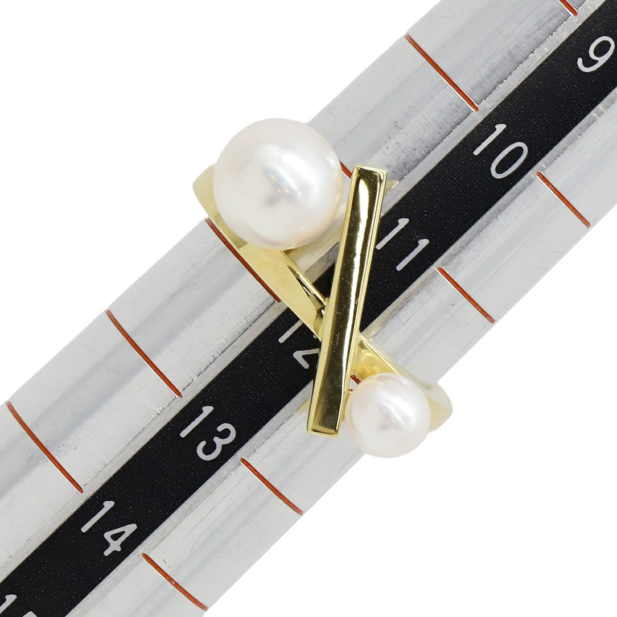 TASAKI TASAKI Balance Cross Ring, 18K Yellow Gold with Pearl, White Pearl and Yellow Gold, 2 Pearls, Size 12 [Pre-owned]