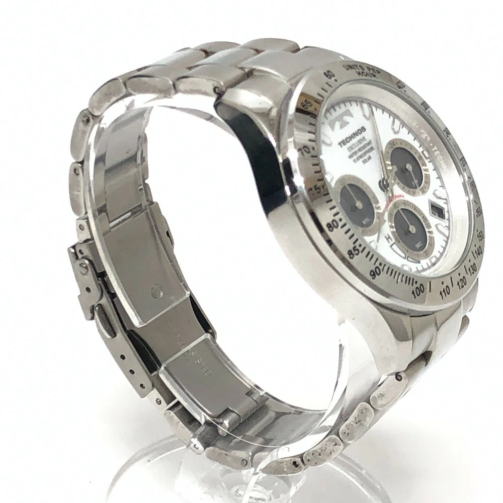 | 商品説明 | 池交換の手間がないソーラー充電式でありながら、本格的なクロノグラフ(ストップウォッチ機能)とデイト表示を搭載。清潔感のあるホワイトの文字盤と、堅牢なステンレススチール製のケース・バンドが、ビジネスシーンからカジュアルまで、あらゆる場面で知的な印象を演出します。10気圧防水機能も備え、実用性も兼ね備えた一本です。 |