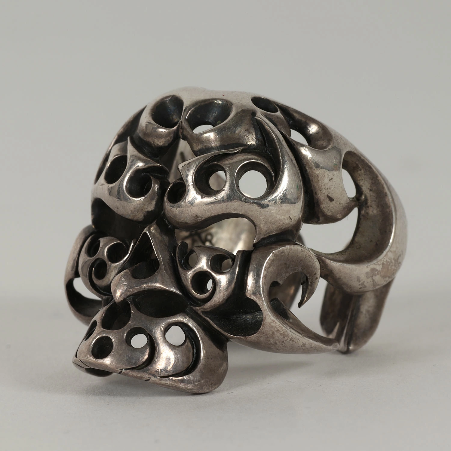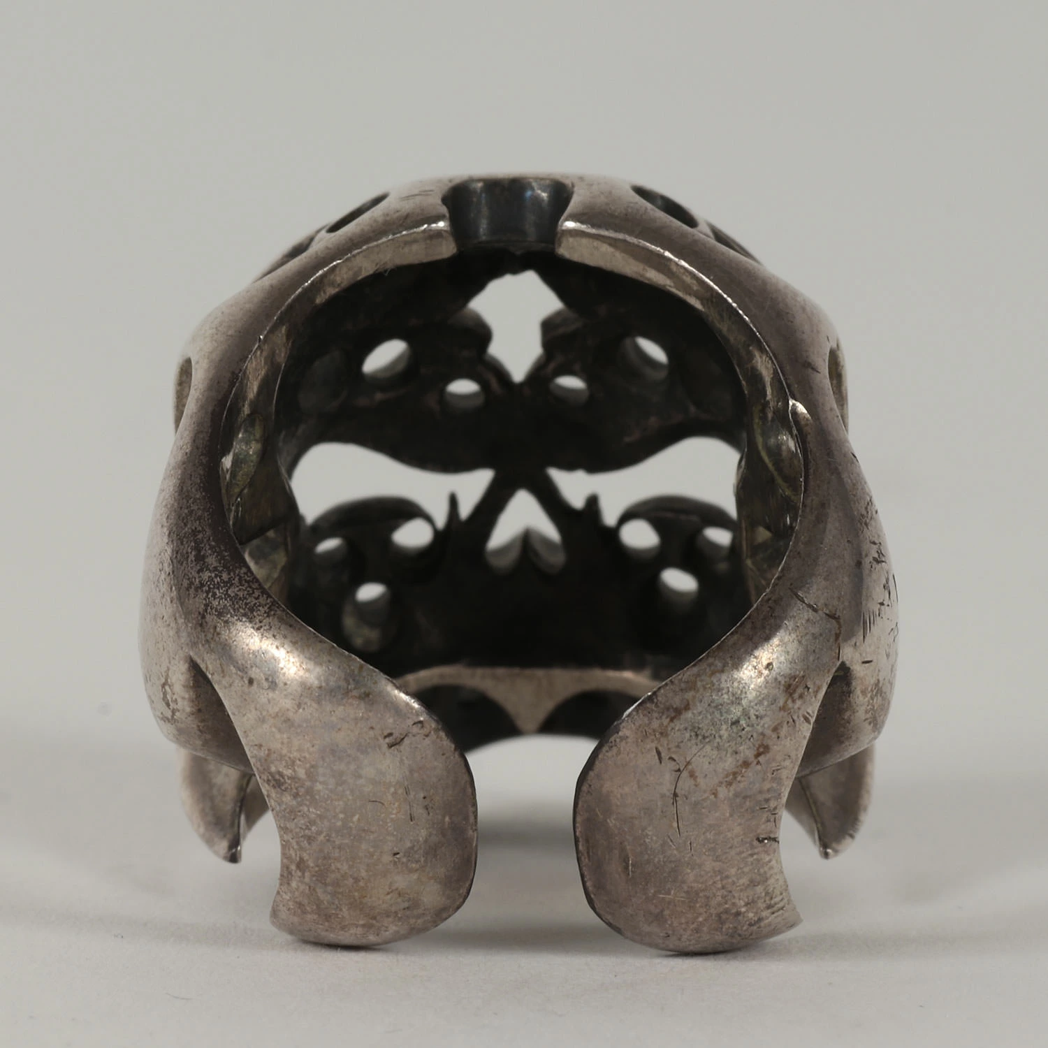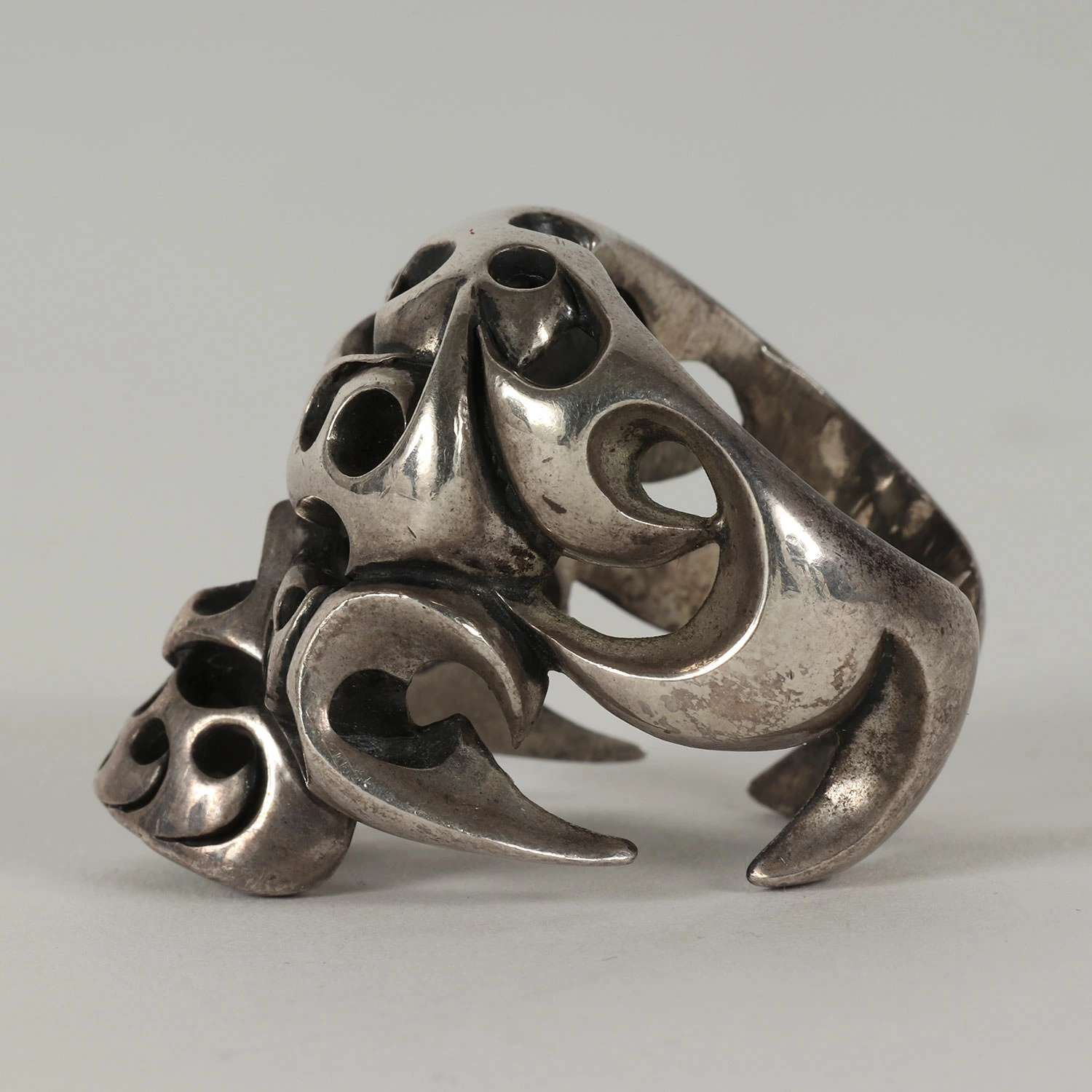 - 定番モチーフのボルネオスカルをそのままデザインしたボリュームのあるシルバーリングになります。