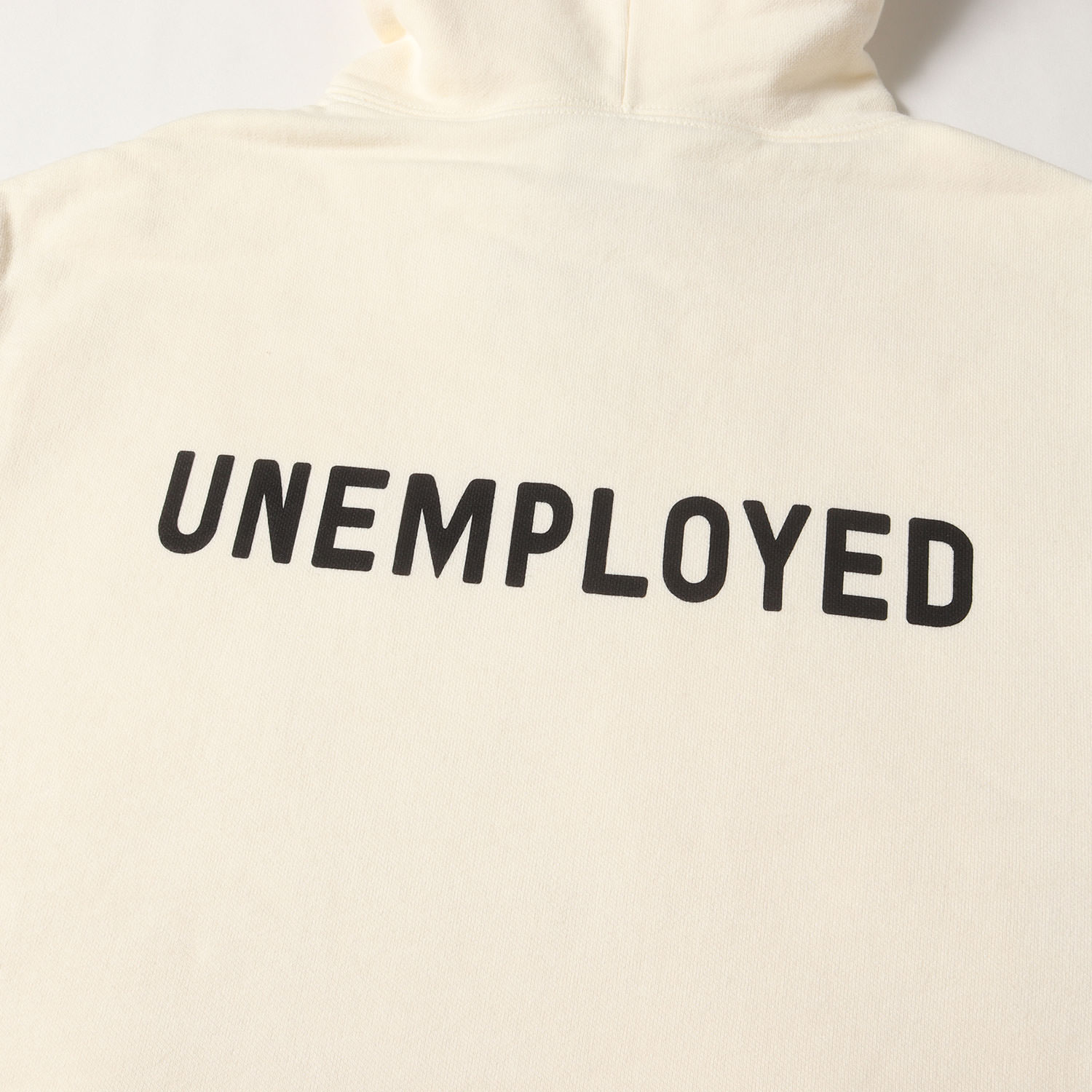 バックに“UNEMPLOYED”ロゴをあしらったダブルフェイスタイプのスウェットパーカーになります。