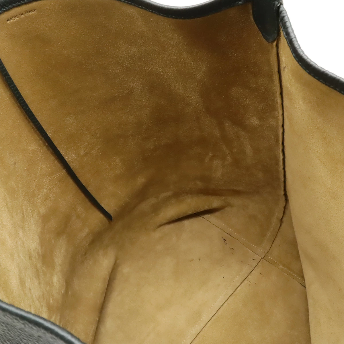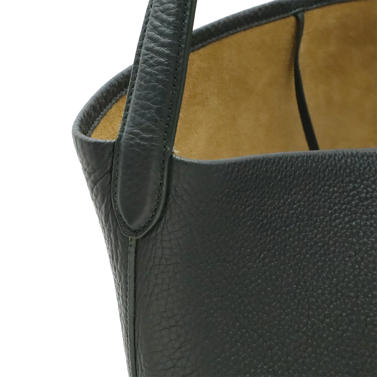 THE ROW Large N/S Park Tote Bag, a one-shoulder bucket-style bag in olive gray leather. [Pre-owned]