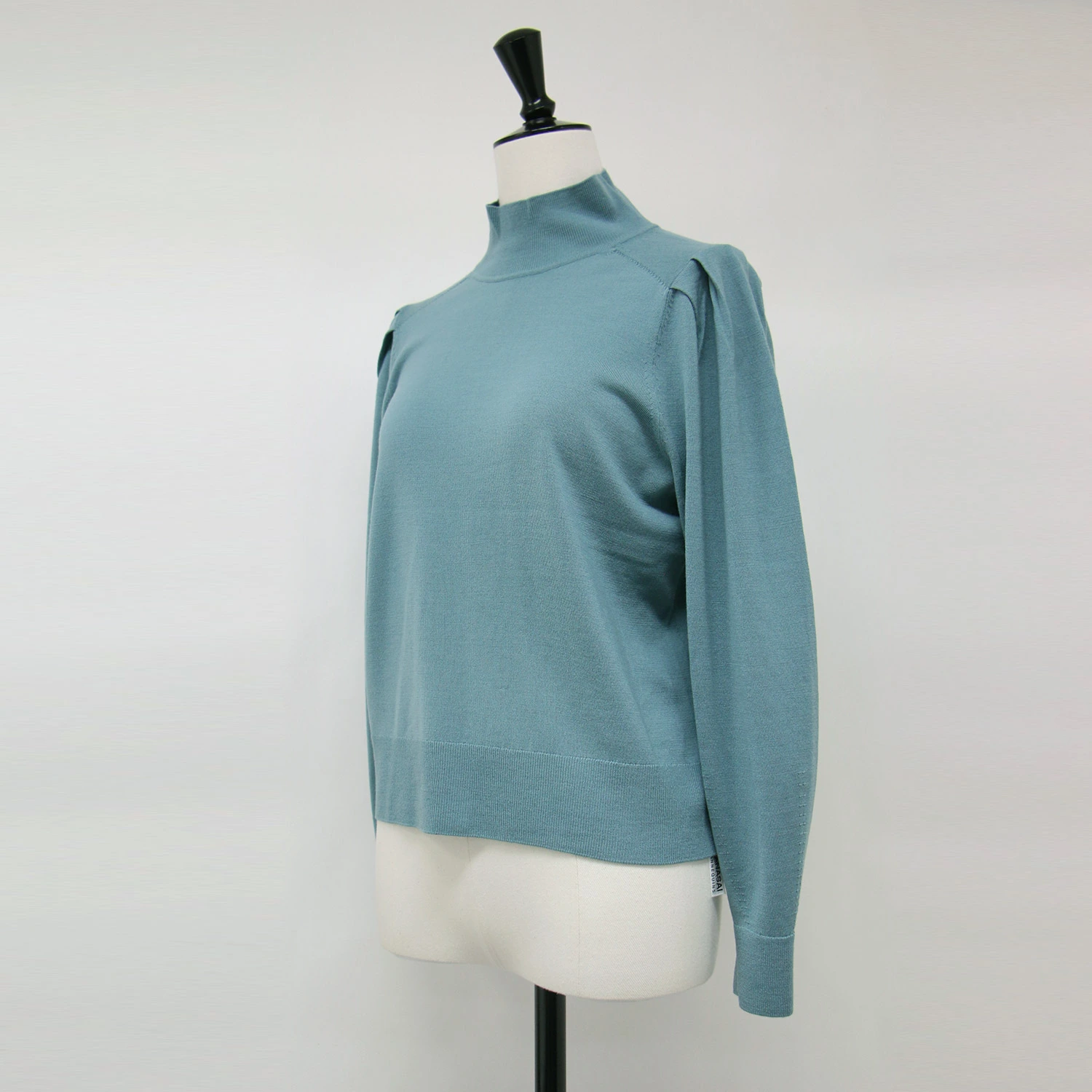 theory luxe Knitwear, Blue, Size 38 (M), Fall/Winter 2024, High-Neck, Balloon Sleeve Knitwear, Lawrence Steff, Long Sleeve, High-Gauge Wool, Washable, Women's, Pre-owned, Excellent Condition, K4617
