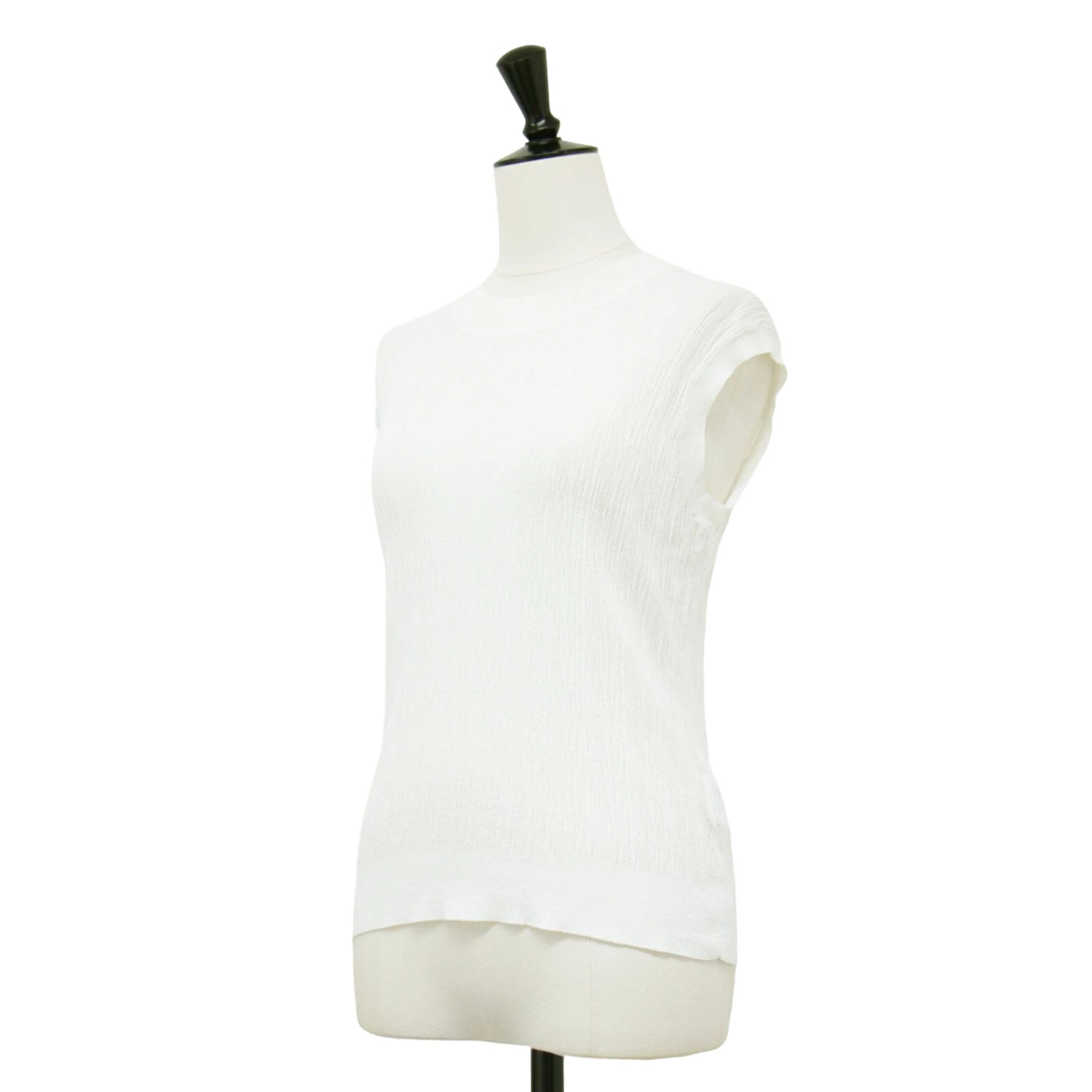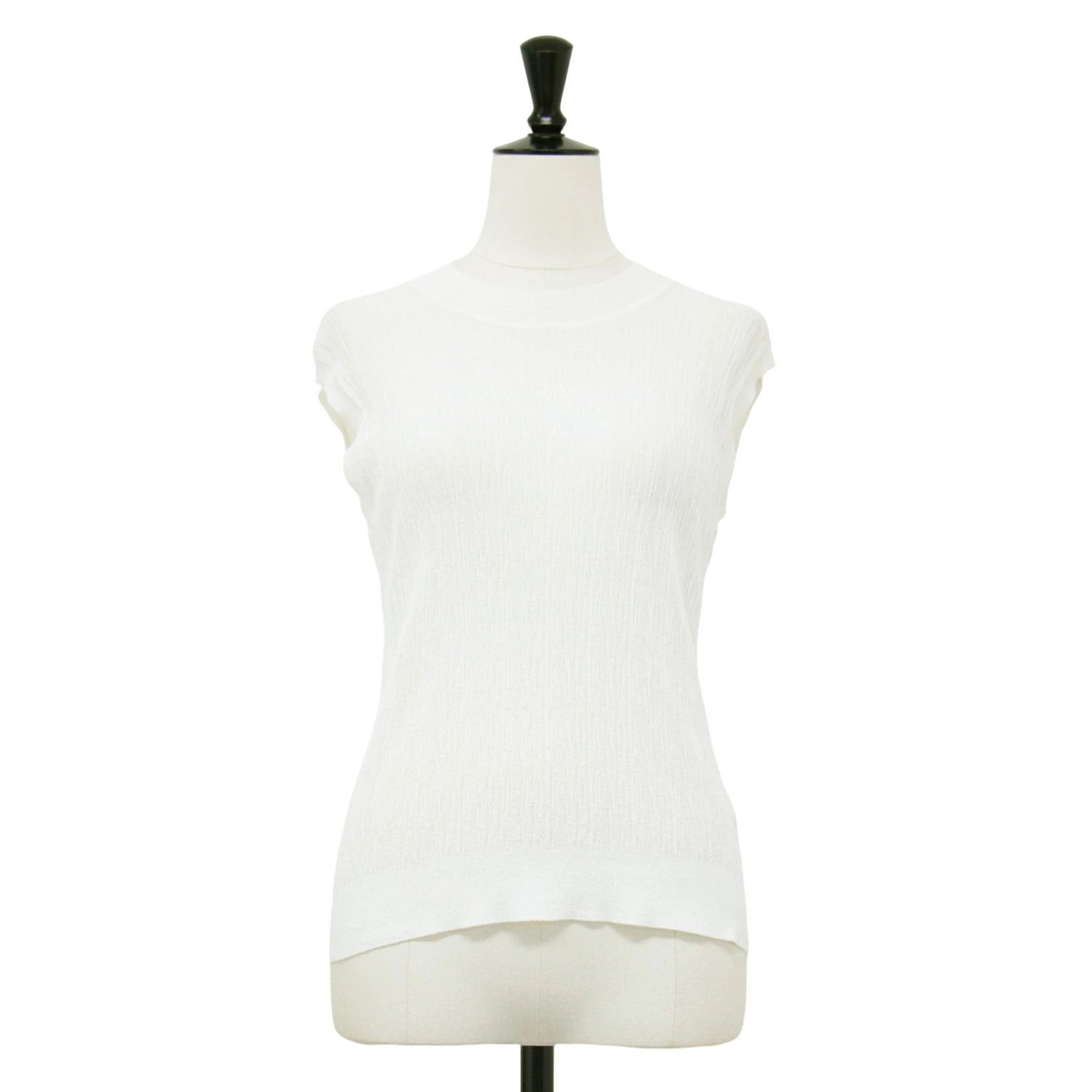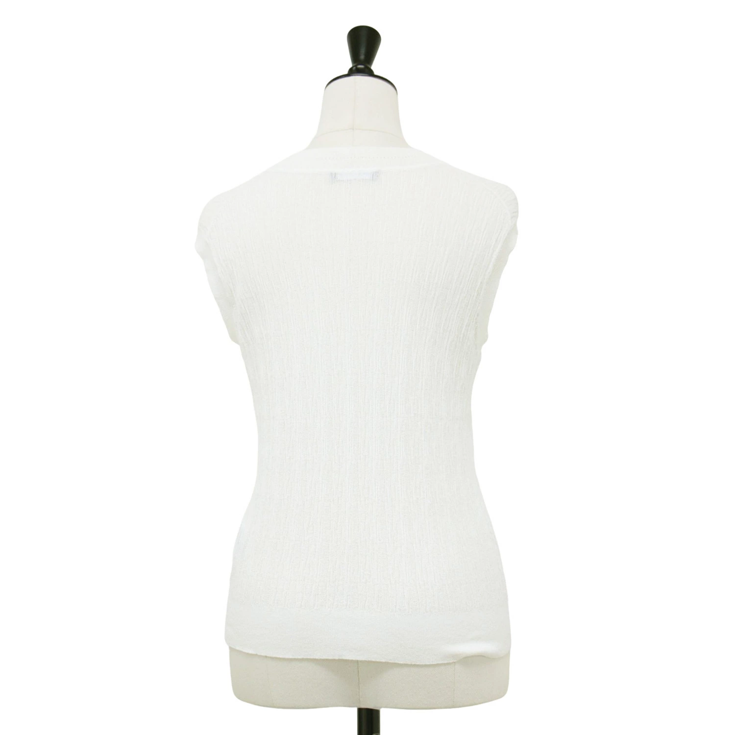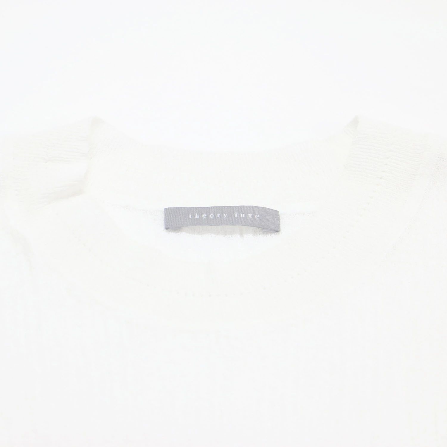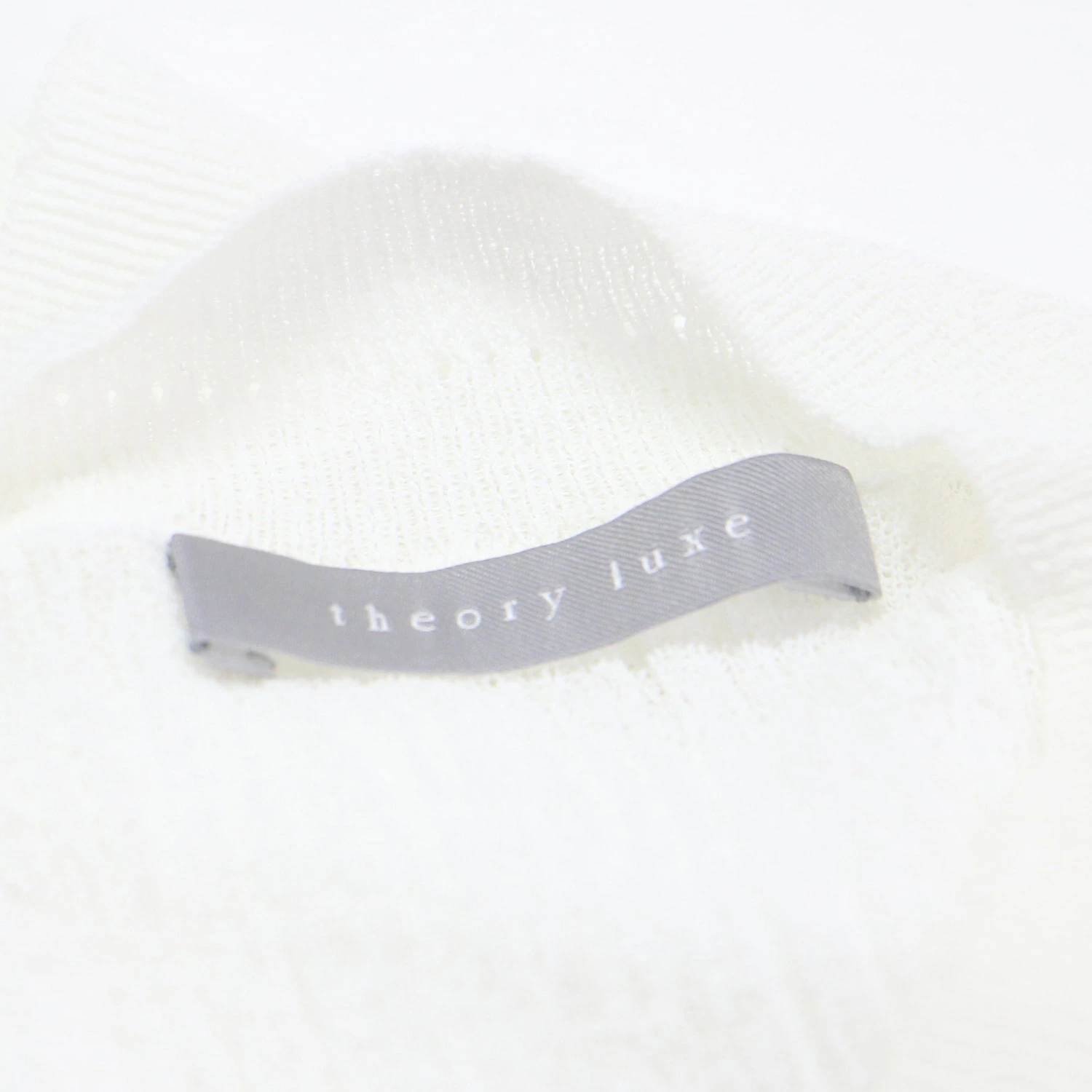 theory luxe white knit, size 38 (M), Fall/Winter 2024 sleeveless sheer knit, Luton Eldo crew neck pullover, dry-touch, washable, women's top, pre-owned, item number K4619