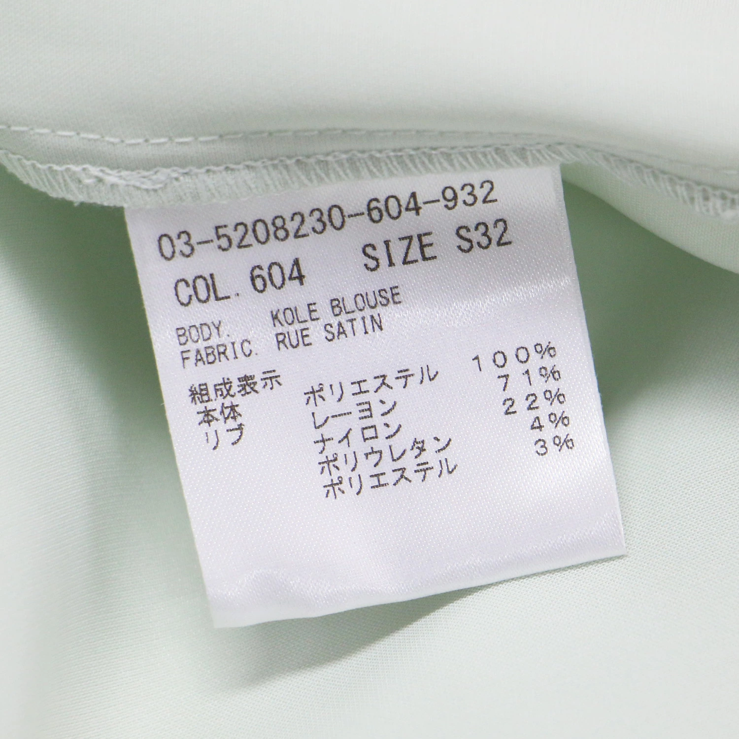 | 素材 | 本体 ポリエステル 100% リブ レーヨン 71% ナイロン 22% ポリウレタン 4% ポリエステル 3% |