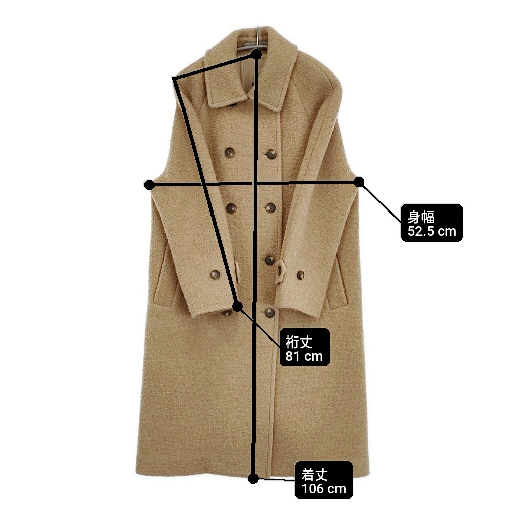 | 実寸サイズ | 着丈:約106cm 身幅:約52.5cm 裄丈:約81cm ※採寸画像がある商品はハンガーに吊るした状態での計測のため、平置きでの採寸とは差が生じる場合がございます。平置きでの実寸サイズをご希望の場合は、ご購入前に必ずご質問ください。 ※記載以外のサイズが合わないことを理由とした返品はできませんので、 記載部分以外で実寸サイズの気になる箇所があれば必ず購入前にご質問ください。 |