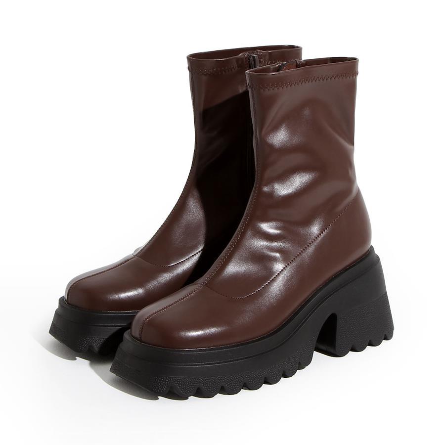 Roseオリジナル新作ブーツ【デザイン】厚底ストレッチロングブーツのショートVer.を作りました。程よいストレッチでしっかりフィット完璧シルエットの細見せ美脚ブーツ◎細身シルエットの筒丈はストレッチ性があり履きやすく、ボリューム感のある可愛い厚底のソールで脚長&美脚効果も抜群。