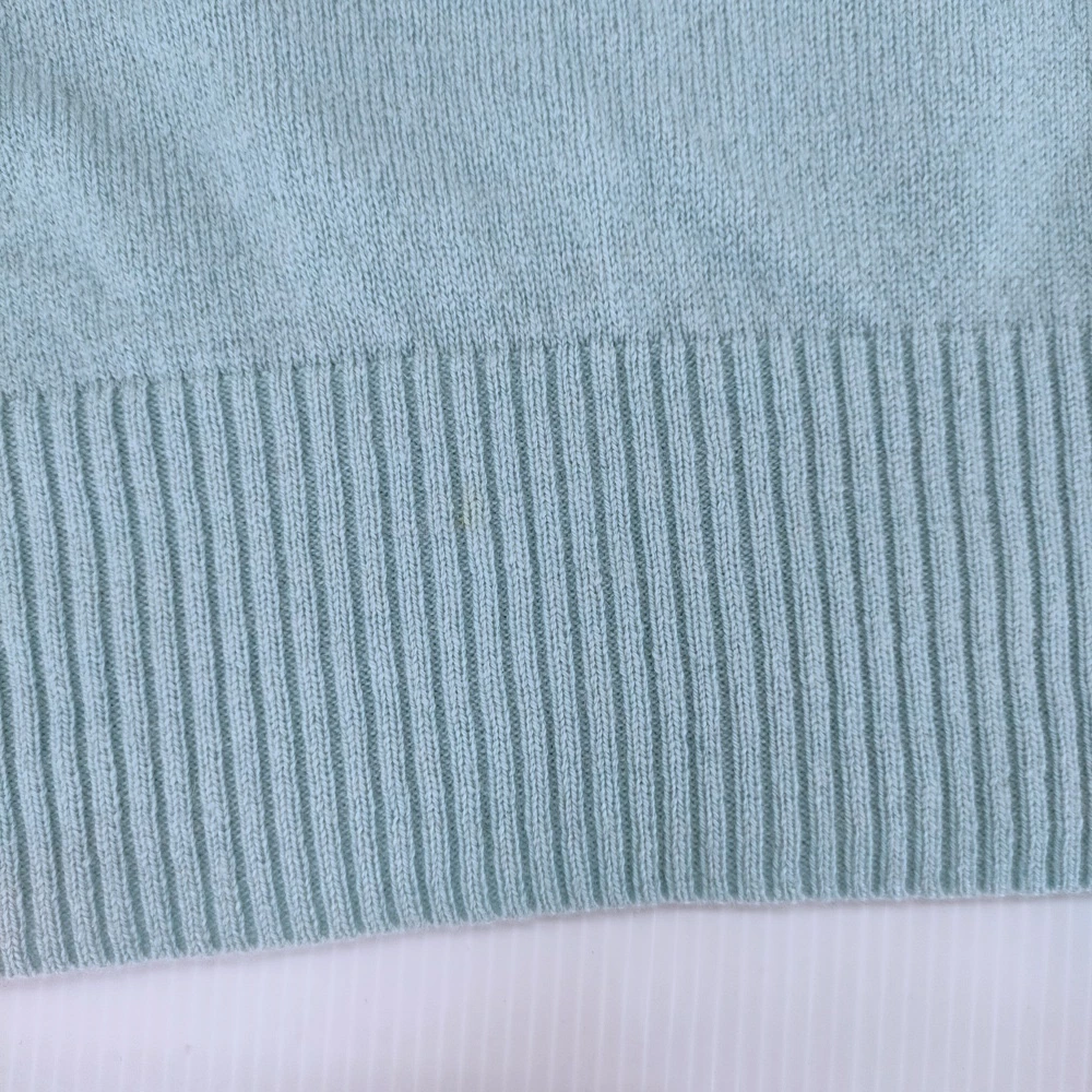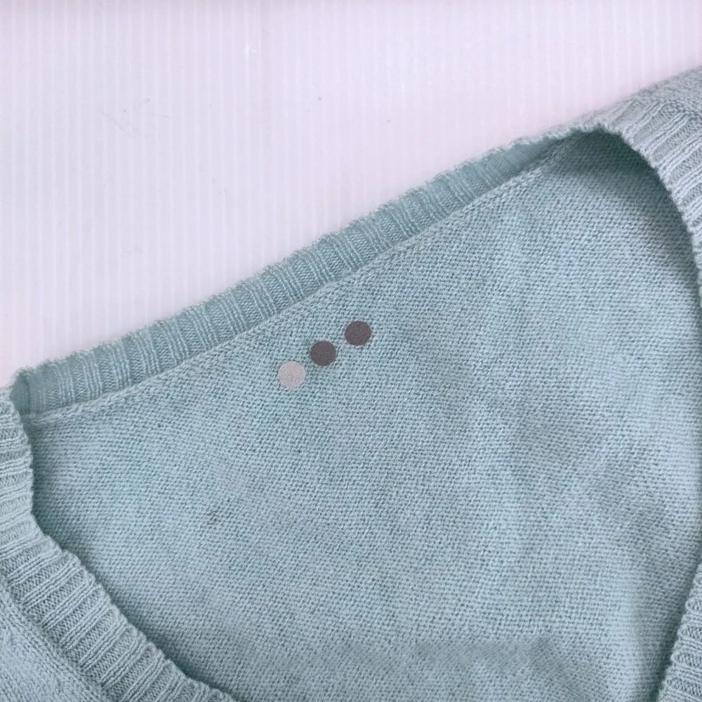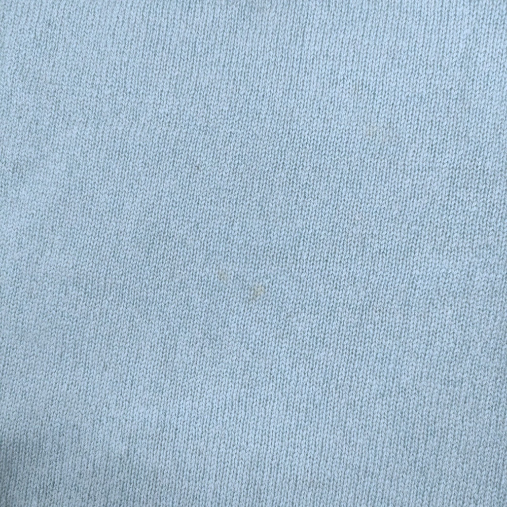右袖口内側・背中右側・裾に黄色い薄いシミが見られます。