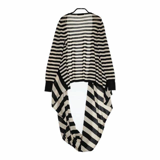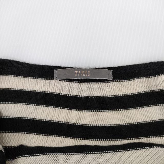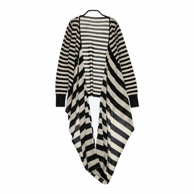 TIENS ecoute 60641 Designer Knit, Asymmetrical Wool-Acrylic Striped Knit, Black and Beige, Women's, Pre-owned, 4-1003T