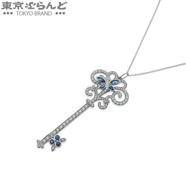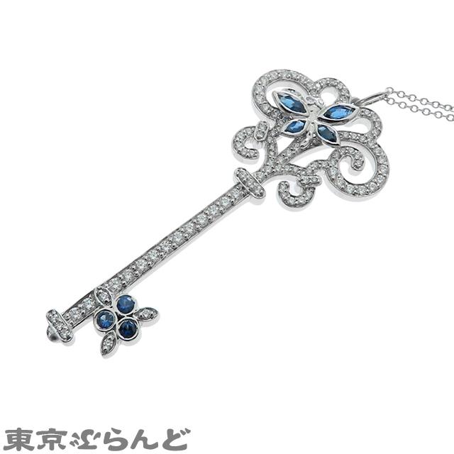 Tiffany Enchant Dragonfly Key Necklace, Pt950, K18WG, Diamond, and Sapphire Pendant, Women's, Polished