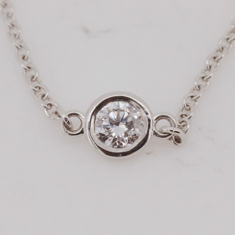 Brand: Tiffany & Co. Diamond by the YardWeight: 1.3 gCarat: No carat engravingSize (cm):Top size: Approx. W0.44 × H0.44 × D0.2 cmChain length/inner circumference: Approx. 17 cm (length not adjustable)Size (inch):Top size: Approx. W0.173 × H0.173 × D0.079 inchChain length/inner circumference: Approx. 6.693 inch (length not adjustable)Product Rank: A RankAccessories: Outer boxInner boxRemarks: *This item has been newly polished.