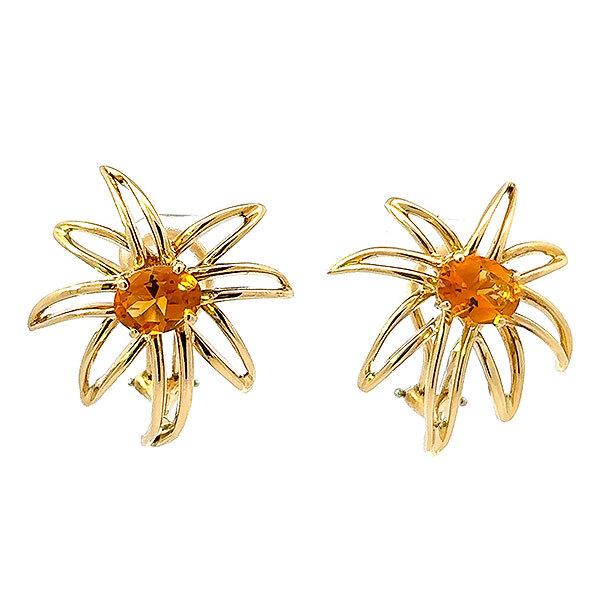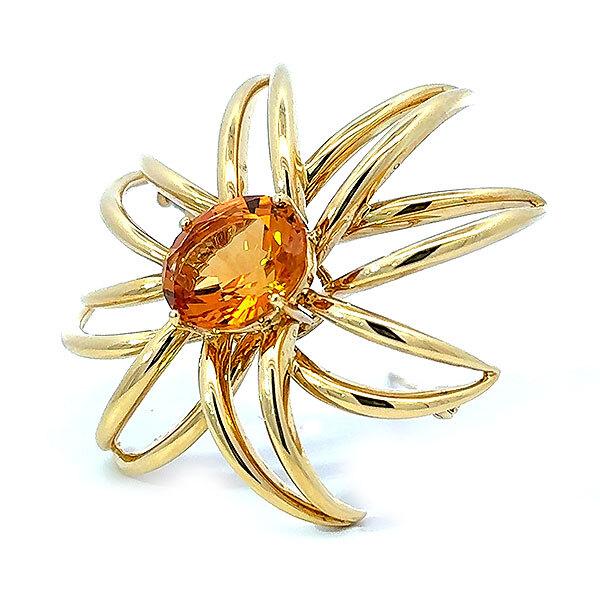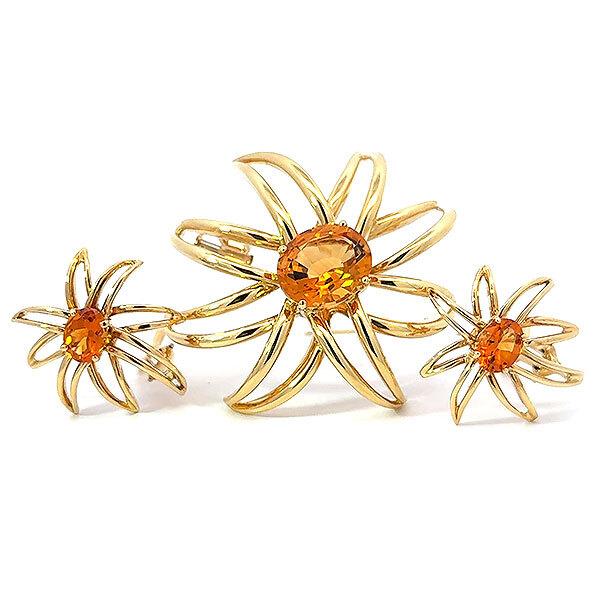 Tiffany Fireworks Flower Motif Citrine Brooch and Earrings Set in 18K Yellow Gold.