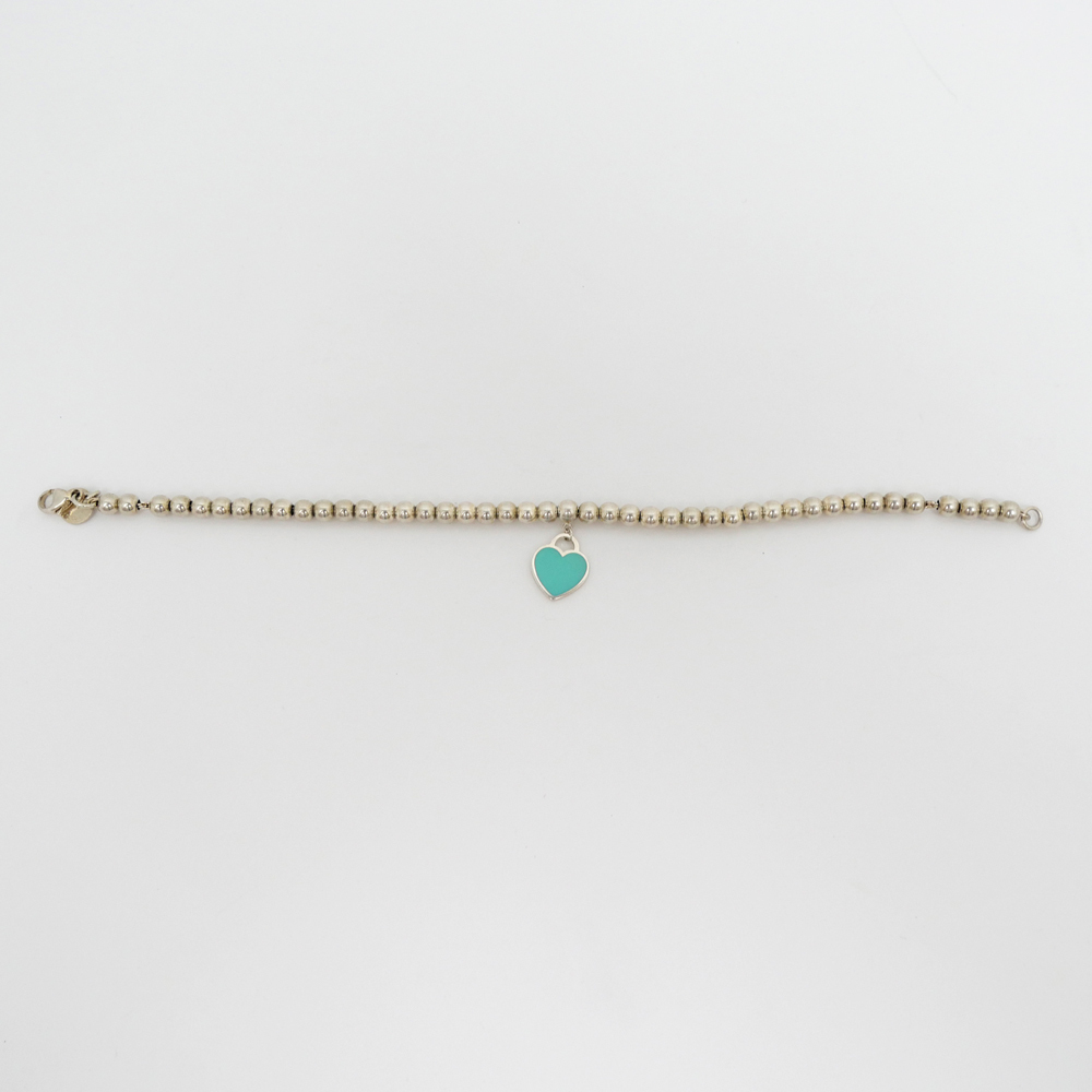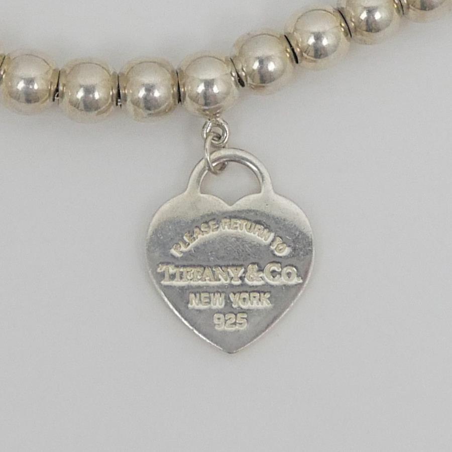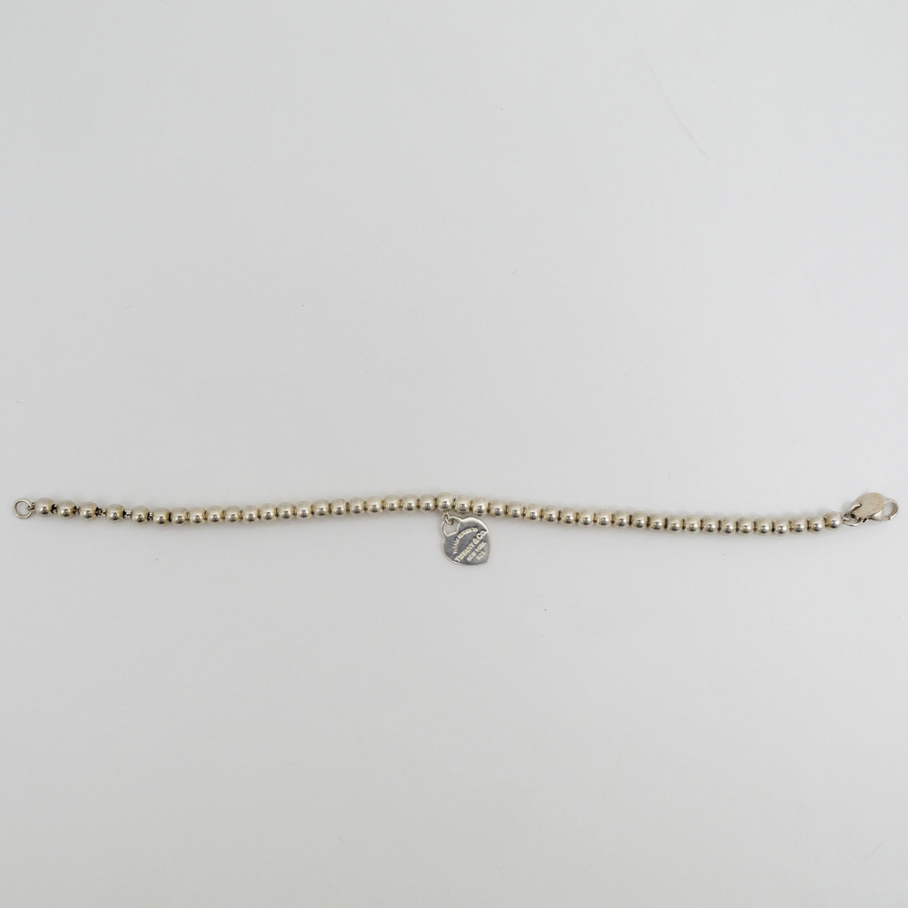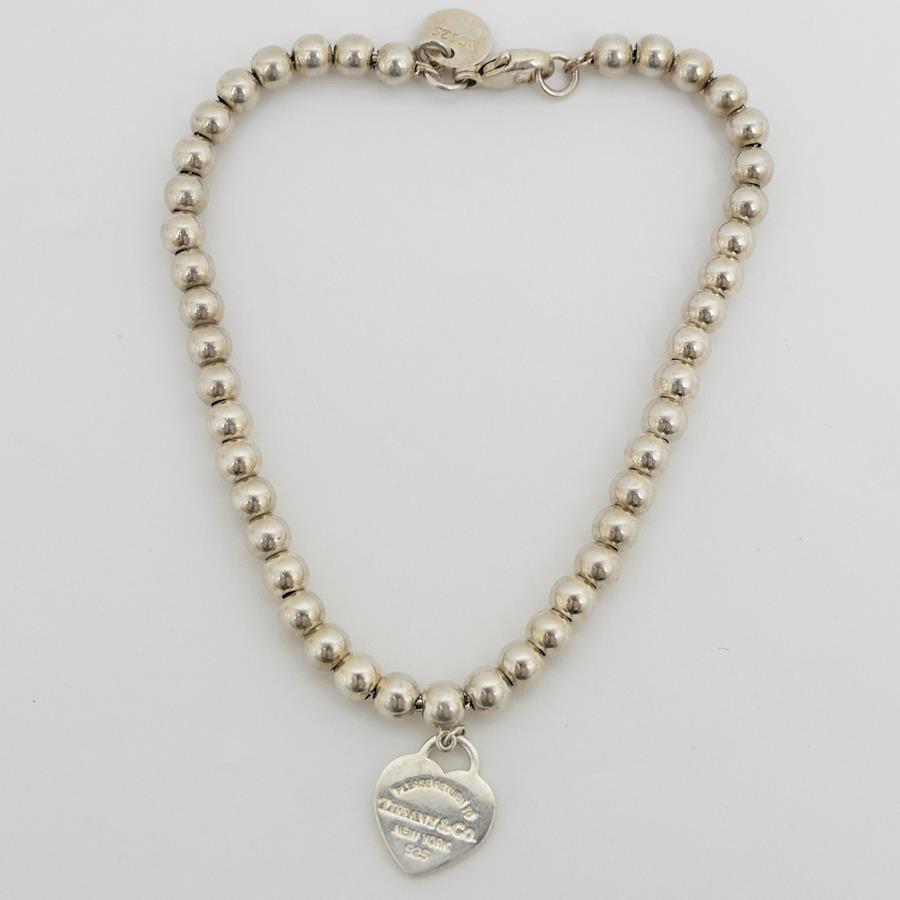Product Rank: ABCondition: Overall in good condition, but as this is a pre-owned item, there are minor scratches associated with use.There is also some discoloration. (See photos 7 and 8.)The ball chain slides left and right, leaving a 5mm gap when all the ball chains are pushed to one side.This item has been ultrasonically cleaned.Please refer to the images and feel free to contact us with any questions.Please note that the texture and color may appear different from the actual product depending on the shooting environment and your monitor settings.Brand: [TIFFANY]Product Name: Return to BL Heart BraceletModel Number:Serial No.:Stamp:Material: 925 Sterling SilverStone:Color: SilverSize: Total Length (approx.): 17.5cm, Inner Diameter (approx.): 16.1cm (Please allow for slight variations in measurement)Weight:Reference Retail Price:Accessories: Box, Dust Bag
