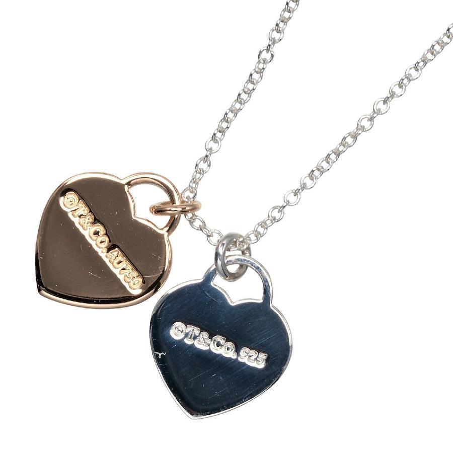 Tiffany Return to Tiffany Double Mini Heart Tag Necklace, 925 Sterling Silver, 18K Pink Gold, Approx. 3.16g, Pre-owned