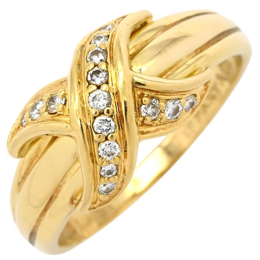Tiffany & Co. Signature Cross Diamond Ring in 18K Yellow Gold (T&Co. Au750) - Size 17.5