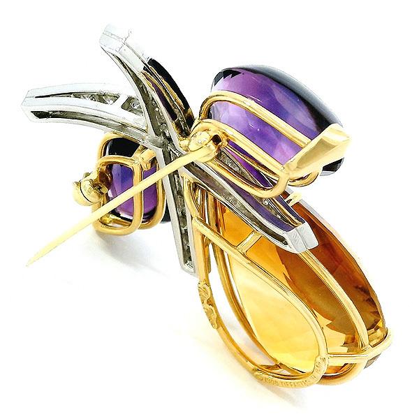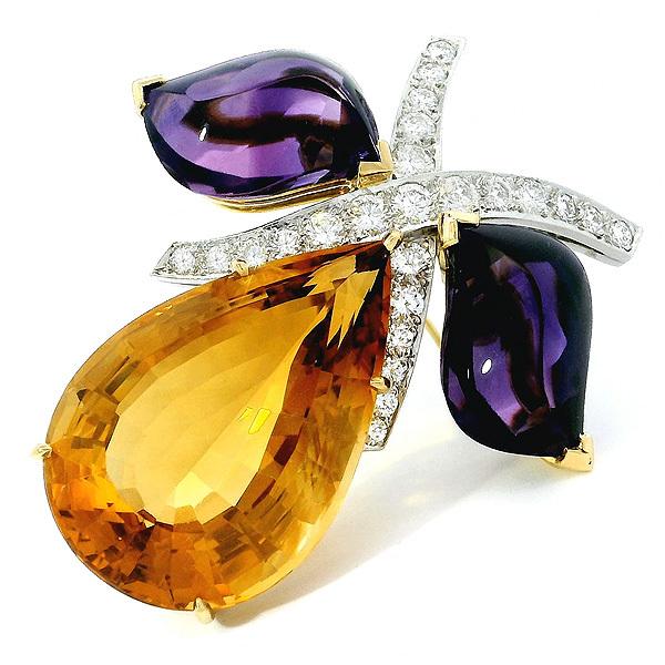 Category: JewelryType: BroochBrand: Tiffany & Co.Size: 40.0 x 46.0 x 13.0mmGemstones: Citrine, Amethyst, DiamondStamp: 1988 TIFFANY & Co. 18K Platinum (K18YG, Pt950)Weight: 22.5gMaterial: 18K Yellow Gold (K18YG) / Platinum (Pt950)List Price: -Accessories: Original BoxCondition: A