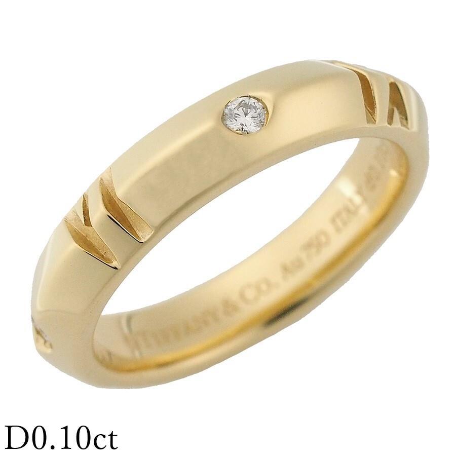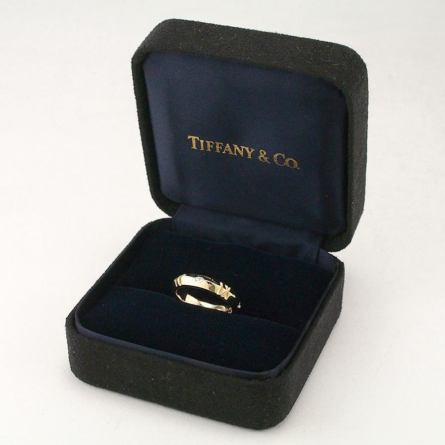 Brand: Tiffany & Co.Product Name: 4-Piece Diamond/0.10ct Atlas X Closed Narrow RingModel Number: --Size: Approx. 15.5Ring Width: 4.3mmWeight: 7.2gMaterial: 18K Yellow GoldStamp: (C) TIFFANY & Co. Au750 ITALY 0.10ctReference Price: --Accessories: Case (some scuffs)Rank: SACondition/Notes: PolishedIf you have any questions about this item, please contact us using the question form.If the stone size is not listed, it is considered to be of unknown size due to the lack of engraving.
