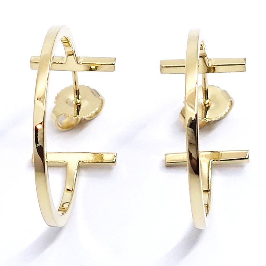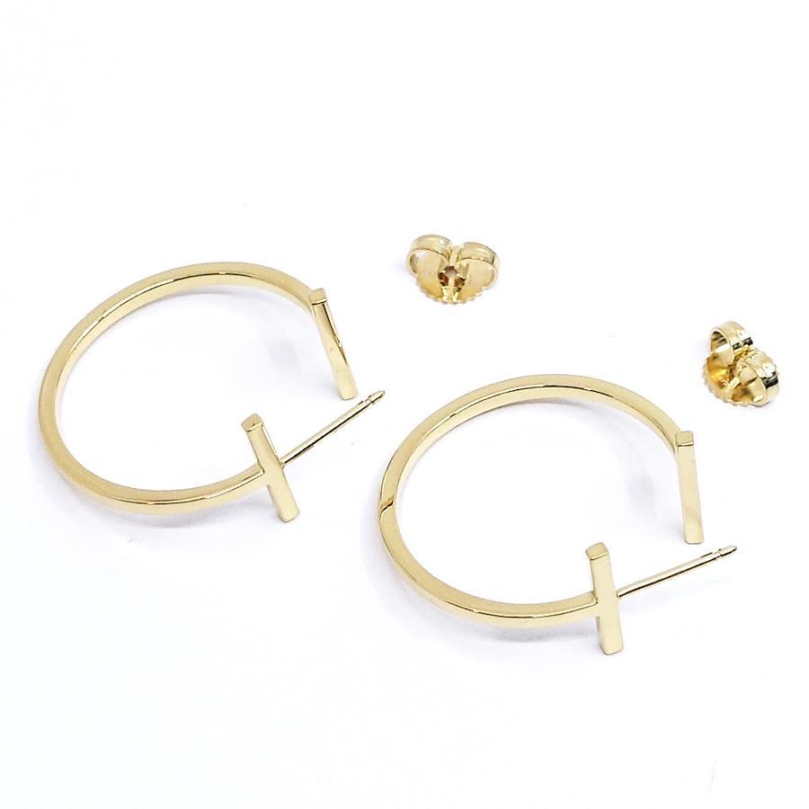 Tiffany 18K Yellow Gold T-Wire Hoop Earrings, Medium Size, 750YG, Women's Jewelry, Refinished