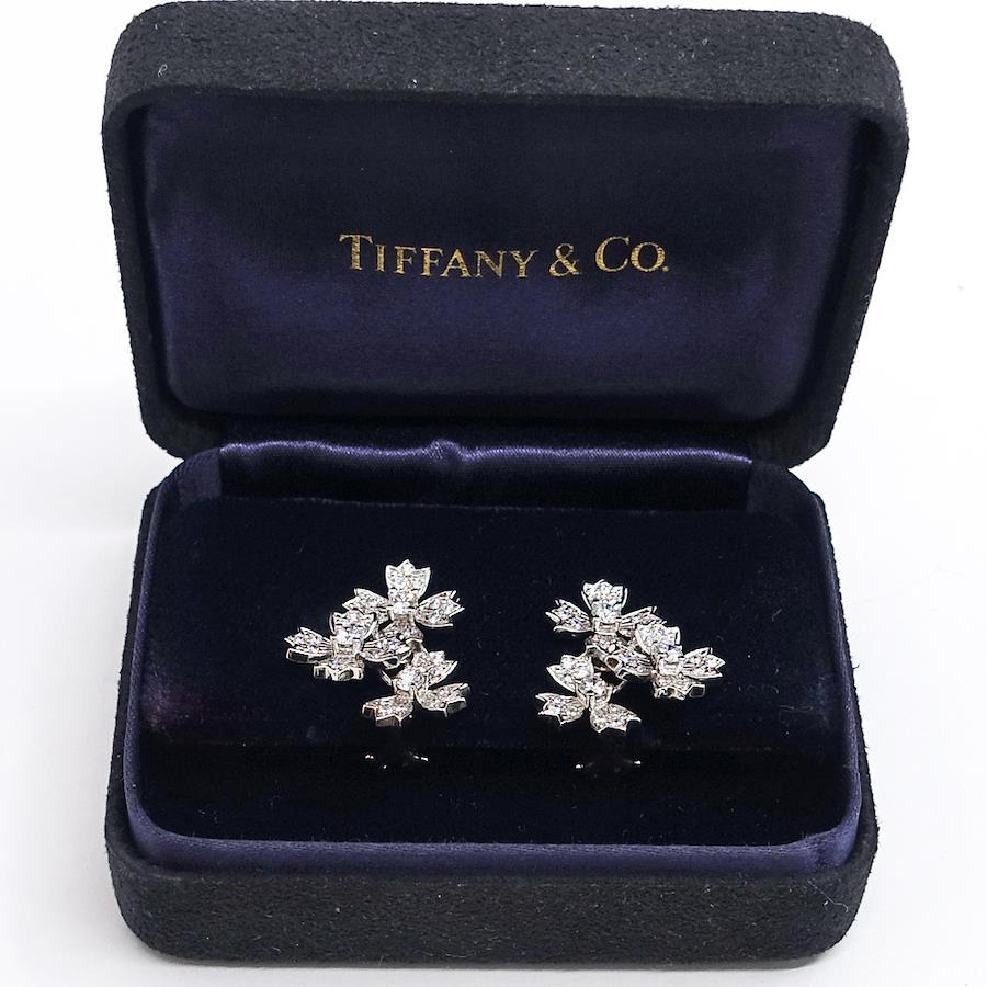 Tiffany Pt950 Floret Pavé Diamond Earrings, Rare Vintage Jewelry for Women