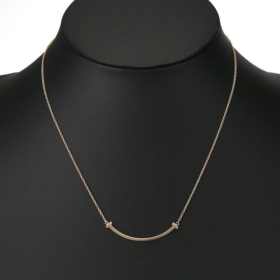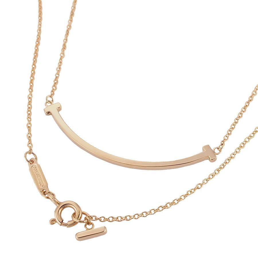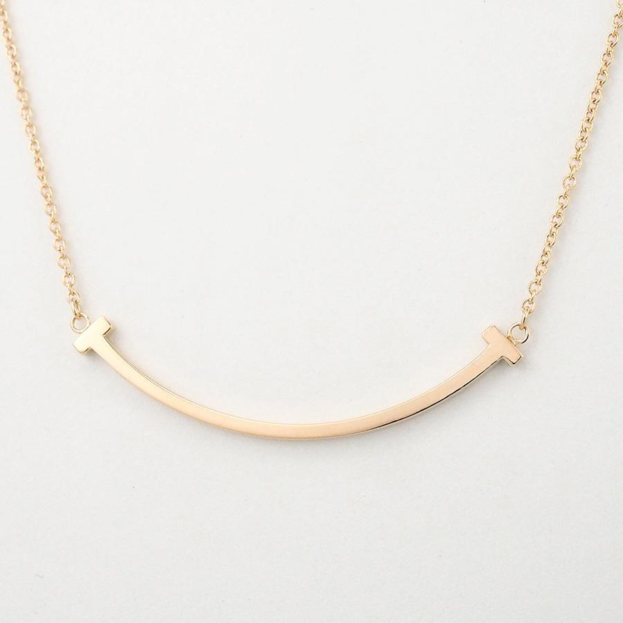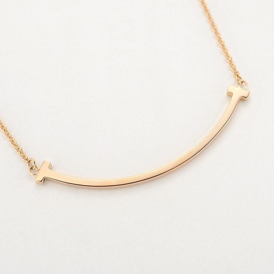 Brand: Tiffany & Co.Product Name: T Smile Small Pendant NecklaceModel Number: 60011678Size: Total Length: Approx. 46.5cm (including clasp)Inner Circumference: Approx. 45.8cm (5cm adjuster)Top: Approx. 37 x 1.4mmWeight: 2.9g (including chain)Material: 18K GoldStamp: [Au750 (C) TIFFANY & Co.] on chainList Price: ¥195,800Accessories: Inner box (stained), outer boxRank: SACondition/Notes: PolishedIf you have any questions about this product, please contact us via the Q&A form.If the stone size is not specified, it is considered an unknown size due to the lack of engraving.