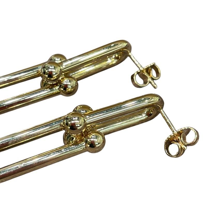 Brand: TIFFANY & Co. / TiffanyProduct Name: Double Long EarringsMaterial: 18K GoldColor: GoldSuitable for WomenSize: Height: Approx. 76.5mmWidth: Approx. 10.0mmWeight: Approx. 9.2gAccessories: Original Box, Sales Certificate [Items listed in the accessories section and shown in the image are all included.]Condition- Minor scratches due to use- Dents- Slight distortion on post- As this item is also sold in a physical store, scratches and blemishes not shown in the photos or description may occur due to display. Thank you for your understanding.*The color of the product may differ from the actual product depending on your device.