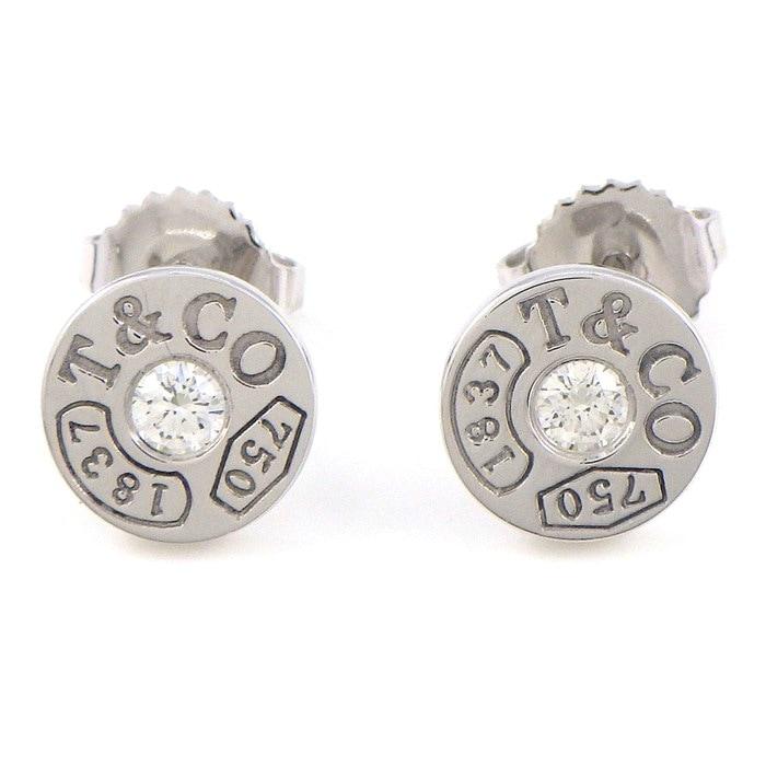 ■商品名Tiffany & Co. ピアス 1837 ロゴ ラウンド サークル 2ポイント ダイヤモンド K18WG 【中古】