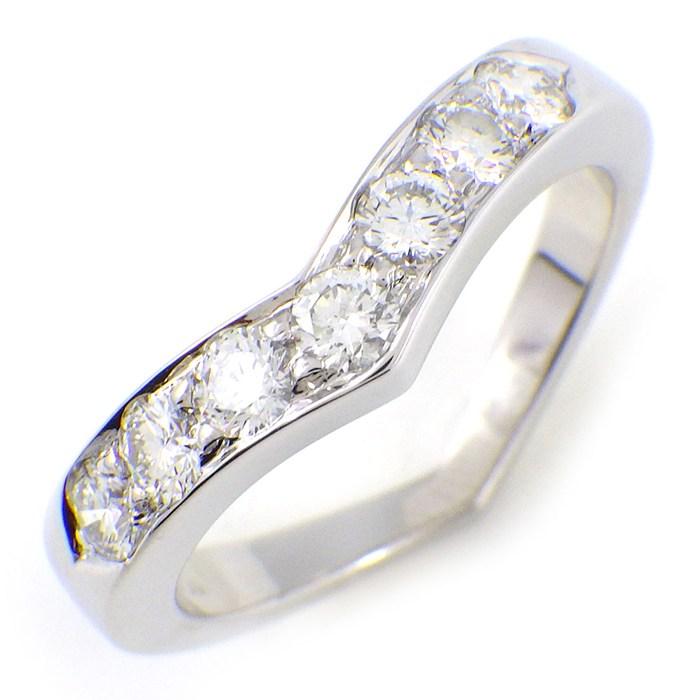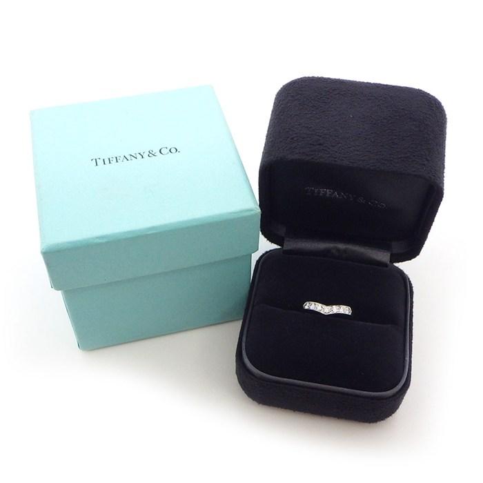 ■商品名Tiffany & Co. ピンキーリング Vバンド ハーフサークル エタニティ 7ポイント ダイヤモンド PT950 6号 【中古】
