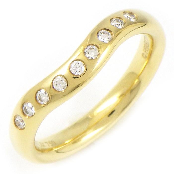 ■商品名Tiffany & Co. リング カーブド バンド ワイド 60016234 9ポイント ダイヤモンド 0.10ct K18YG 8号 【中古】